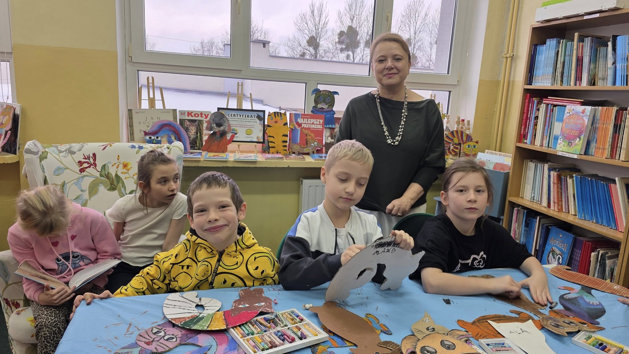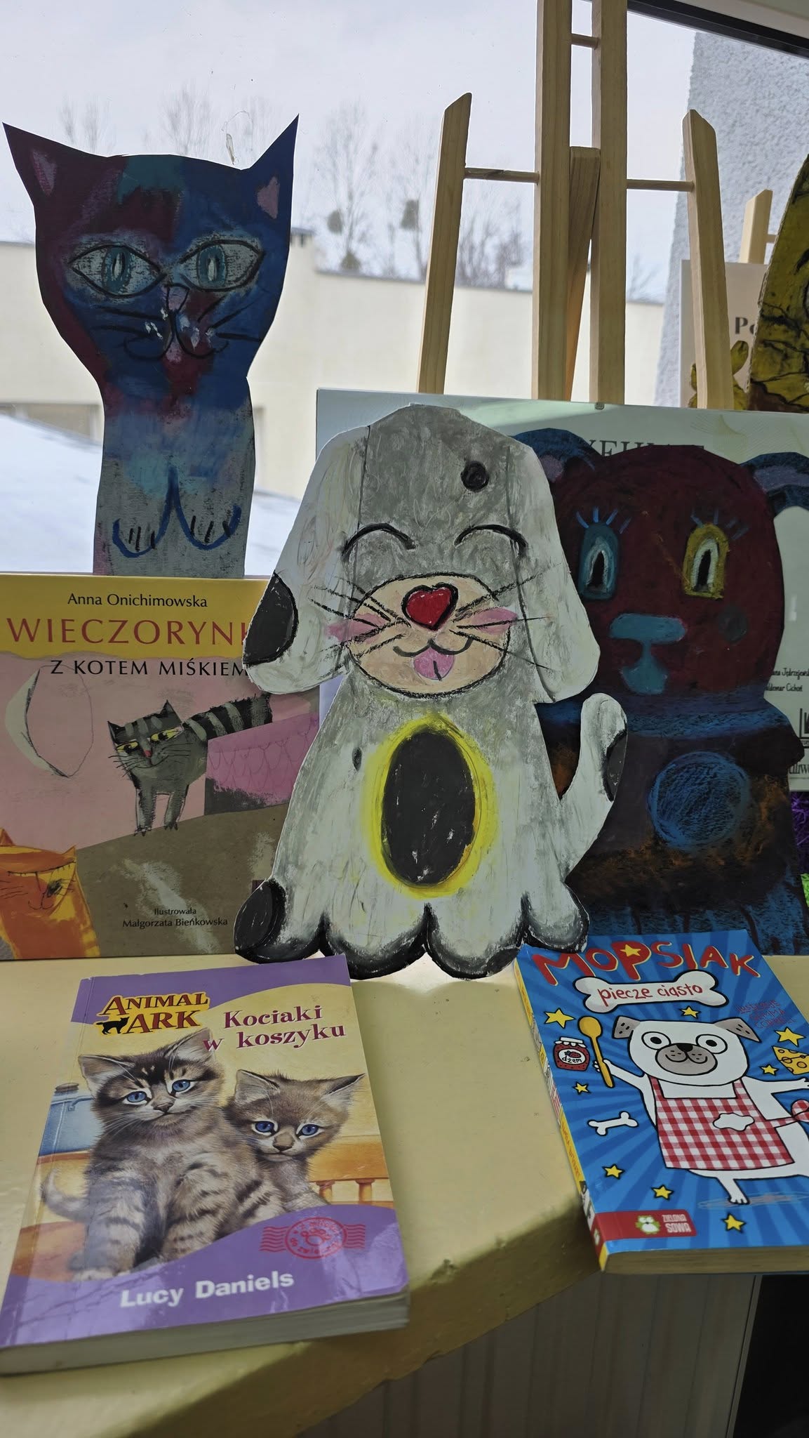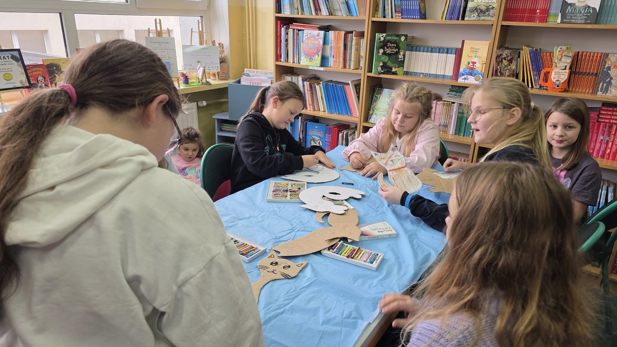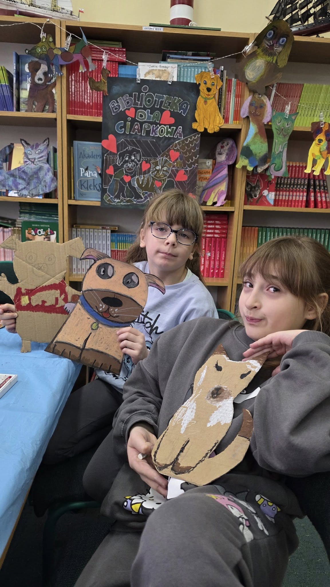 W listopadzie, w naszej wypożyczalni, w ramach akcji czytelniczej "Biblioteka dla Ciapkowa - czytamy psie i kocie opowieści" zachęcaliśmy uczniów do angażowania się w pomoc gdyńskiemu schronisku dla zwierząt. W czasie przerw panie bibliotekarki oraz sami uczniowie czytali fragmenty książek o naszych czworonożnych przyjaciołach, zaś pozostali czytelnicy, wykonywali pastelami olejnymi piękne portrety psów i kotów. Było wesoło, gwarno i mamy nadzieję, że naszą aktywnością przyczyniliśmy się także do przekazania darów w postaci karmy, kocyków, akcesoriów dla zwierząt ze schroniska. To piękna, szlachetna akcja organizowana rokrocznie w naszej szkole przez Panią Agnieszkę Zdziech, którą biblioteka z wielką radością wspiera.