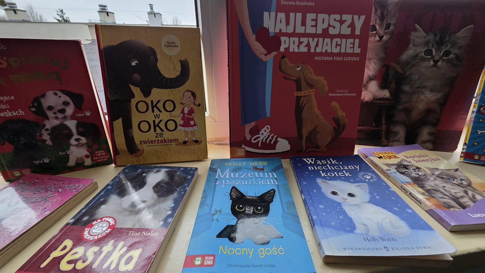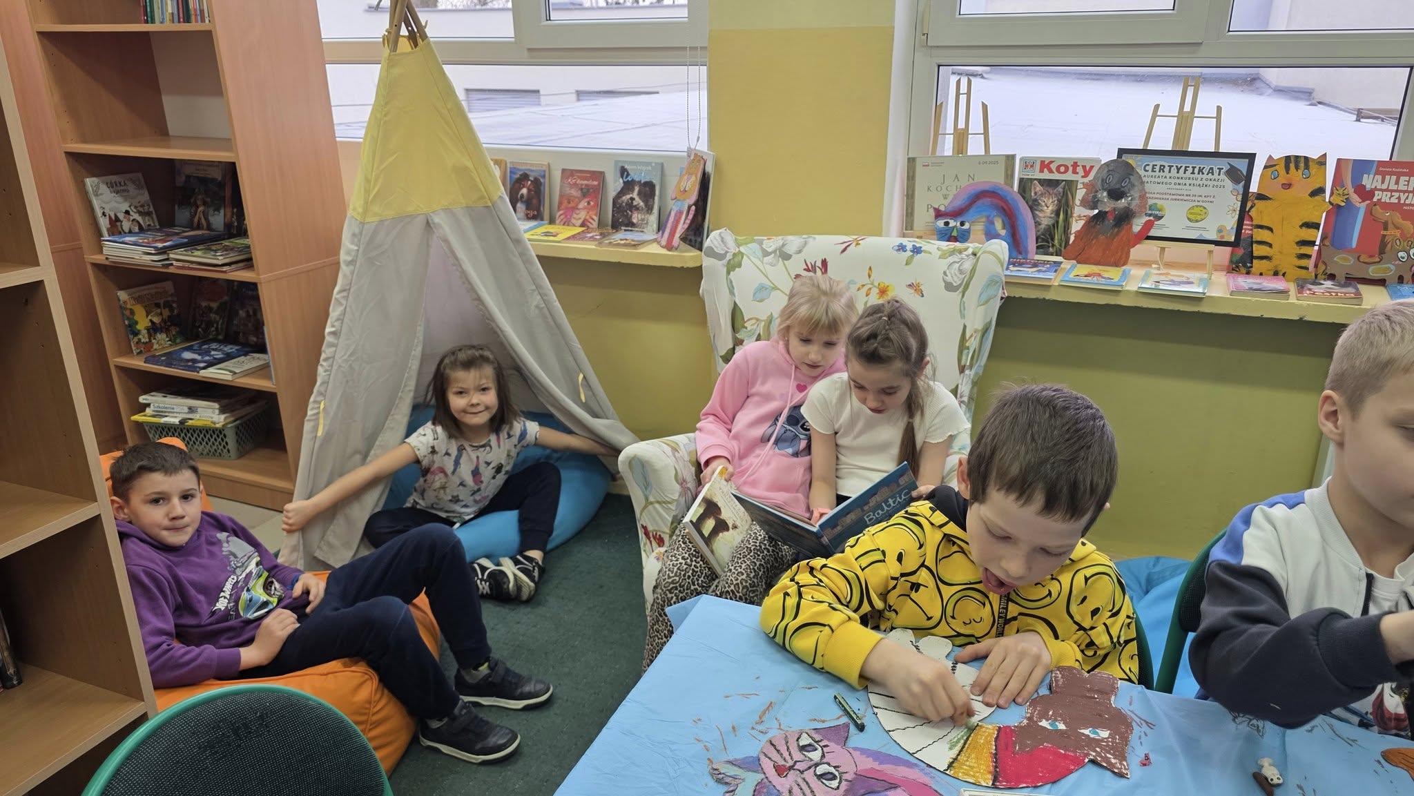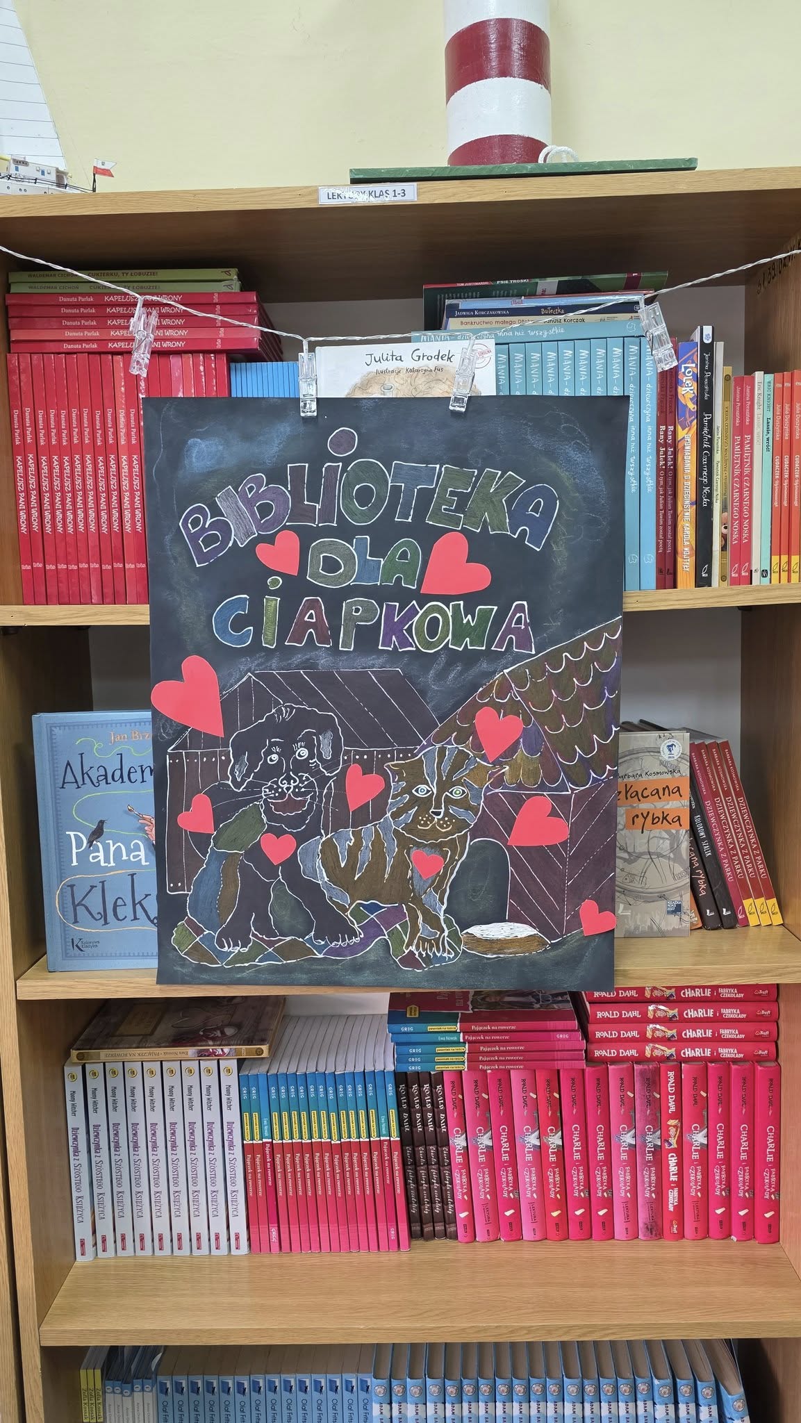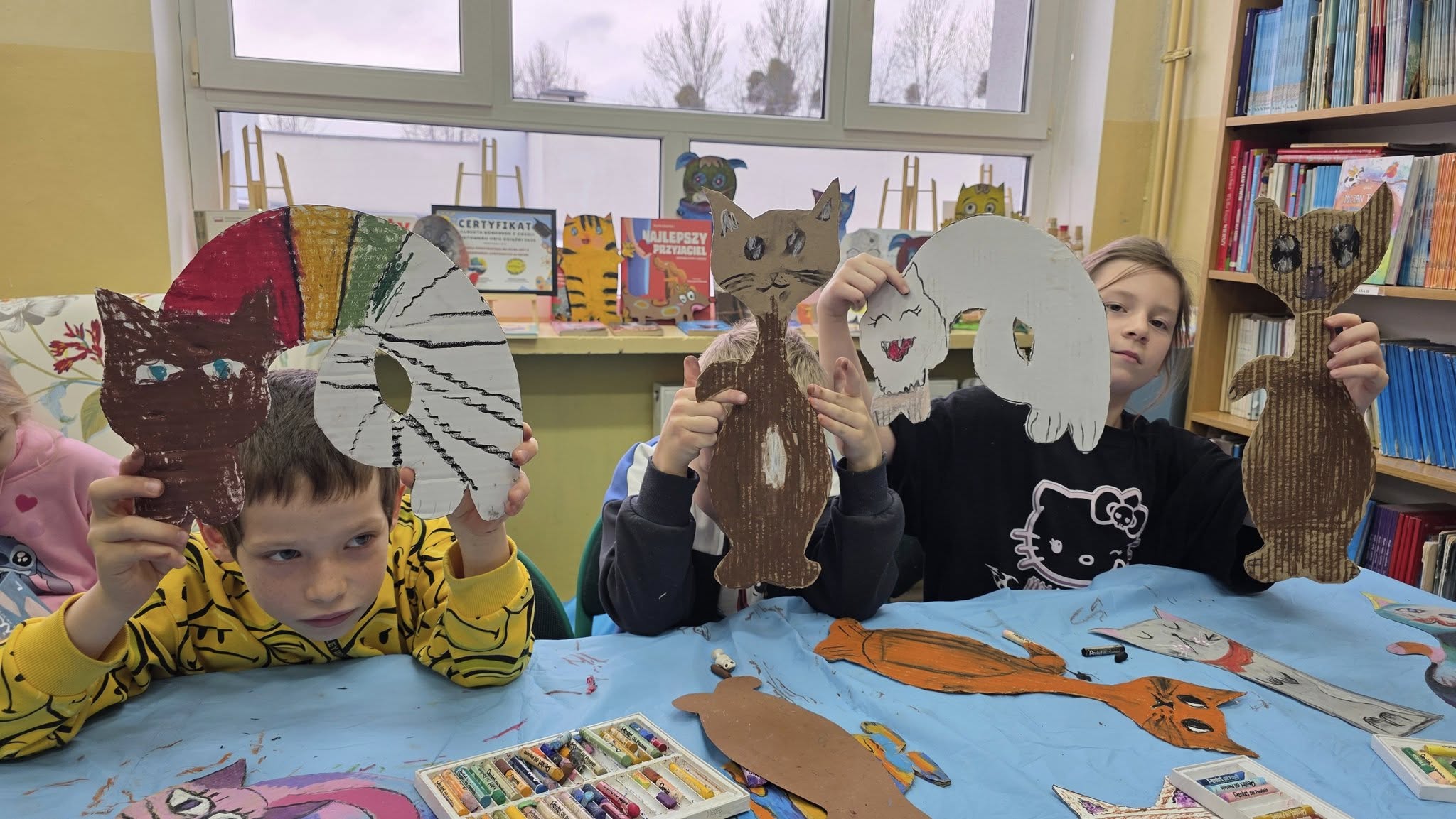 W listopadzie, w naszej wypożyczalni, w ramach akcji czytelniczej "Biblioteka dla Ciapkowa - czytamy psie i kocie opowieści" zachęcaliśmy uczniów do angażowania się w pomoc gdyńskiemu schronisku dla zwierząt. W czasie przerw panie bibliotekarki oraz sami uczniowie czytali fragmenty książek o naszych czworonożnych przyjaciołach, zaś pozostali czytelnicy, wykonywali pastelami olejnymi piękne portrety psów i kotów. Było wesoło, gwarno i mamy nadzieję, że naszą aktywnością przyczyniliśmy się także do przekazania darów w postaci karmy, kocyków, akcesoriów dla zwierząt ze schroniska. To piękna, szlachetna akcja organizowana rokrocznie w naszej szkole przez Panią Agnieszkę Zdziech, którą biblioteka z wielką radością wspiera.