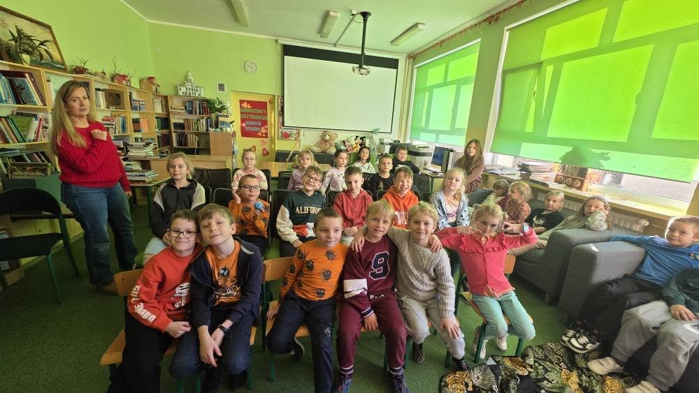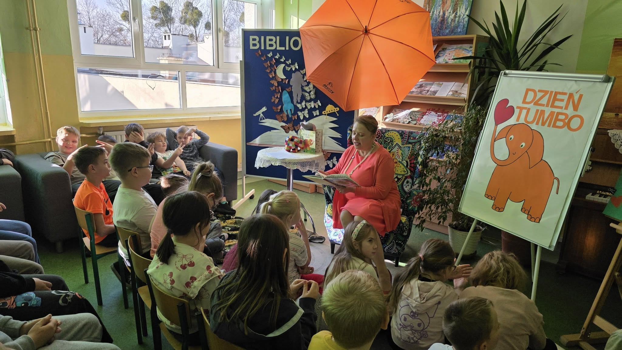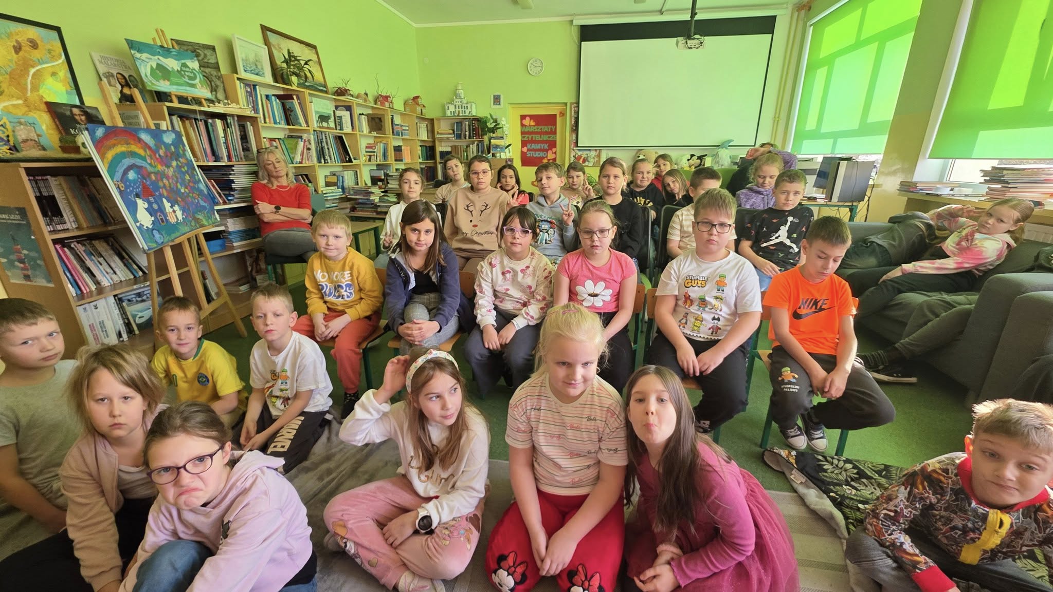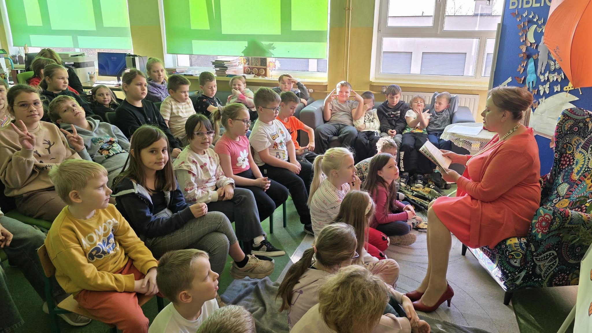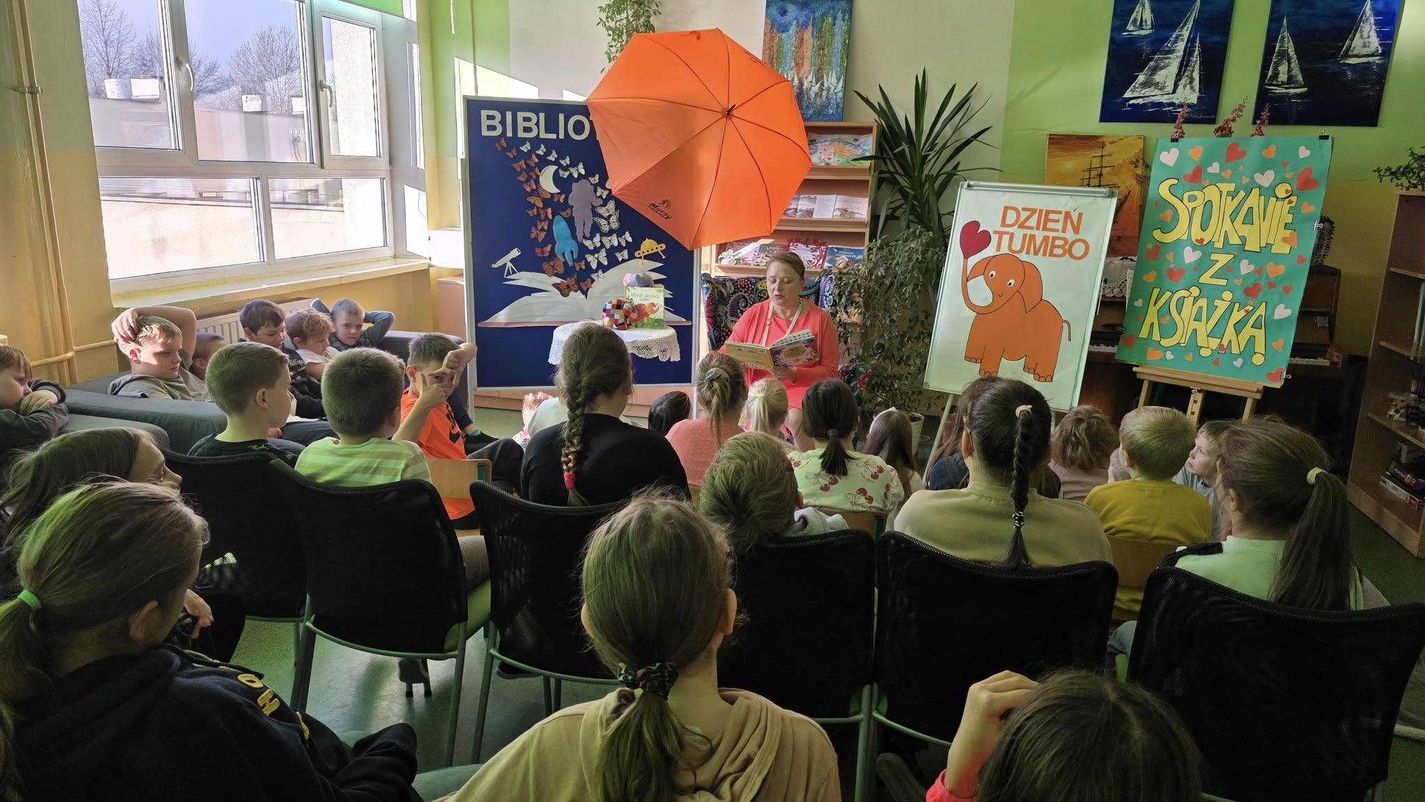 W cyklu "Spotkanie z książką" poznaliśmy dzisiaj książeczkę Marty Zaremby pt. "45 naprawdę niezwykłych słoni" oraz książeczkę Magdy Małkowskiej "Trzecie życie Tumbo", czytanych przez Panią bibliotekarkę Alicję dzieciom z klasy 2b, 2c, 2d i 3b. Uczniowie zostali uświadomieni, że w klasie nikt nie musi być sam ze swoim smutkiem. Czasem wystarczy dobre słowo, przyjazny gest albo po prostu bycie obok. Pomarańczowy słoń Tumbo, bohater dzisiejszych opowieści, w łagodny sposób przeprowadził nas przez tą trudną tematykę i wskazał jak ważne jest, żeby pamiętać, że każdy przeżywa smutek inaczej. Dlatego powinniśmy być dla siebie życzliwi i uważni — tak budujemy klasę, w której każdy będzie się czuł bezpiecznie.