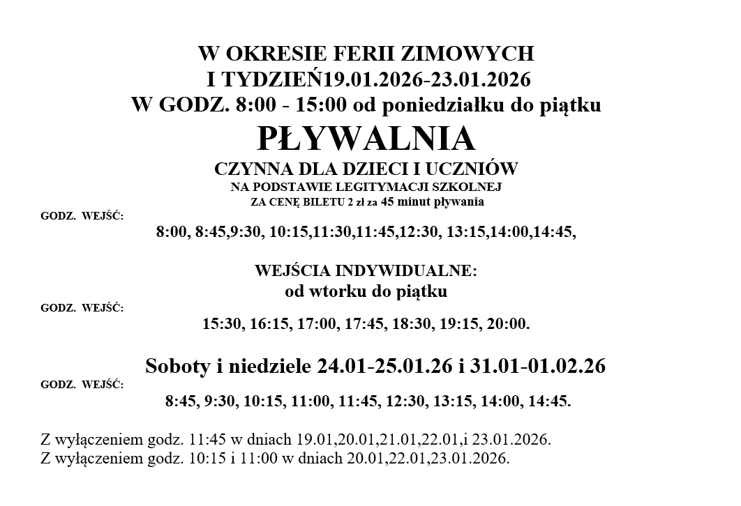 FERIE PŁYWALNIA