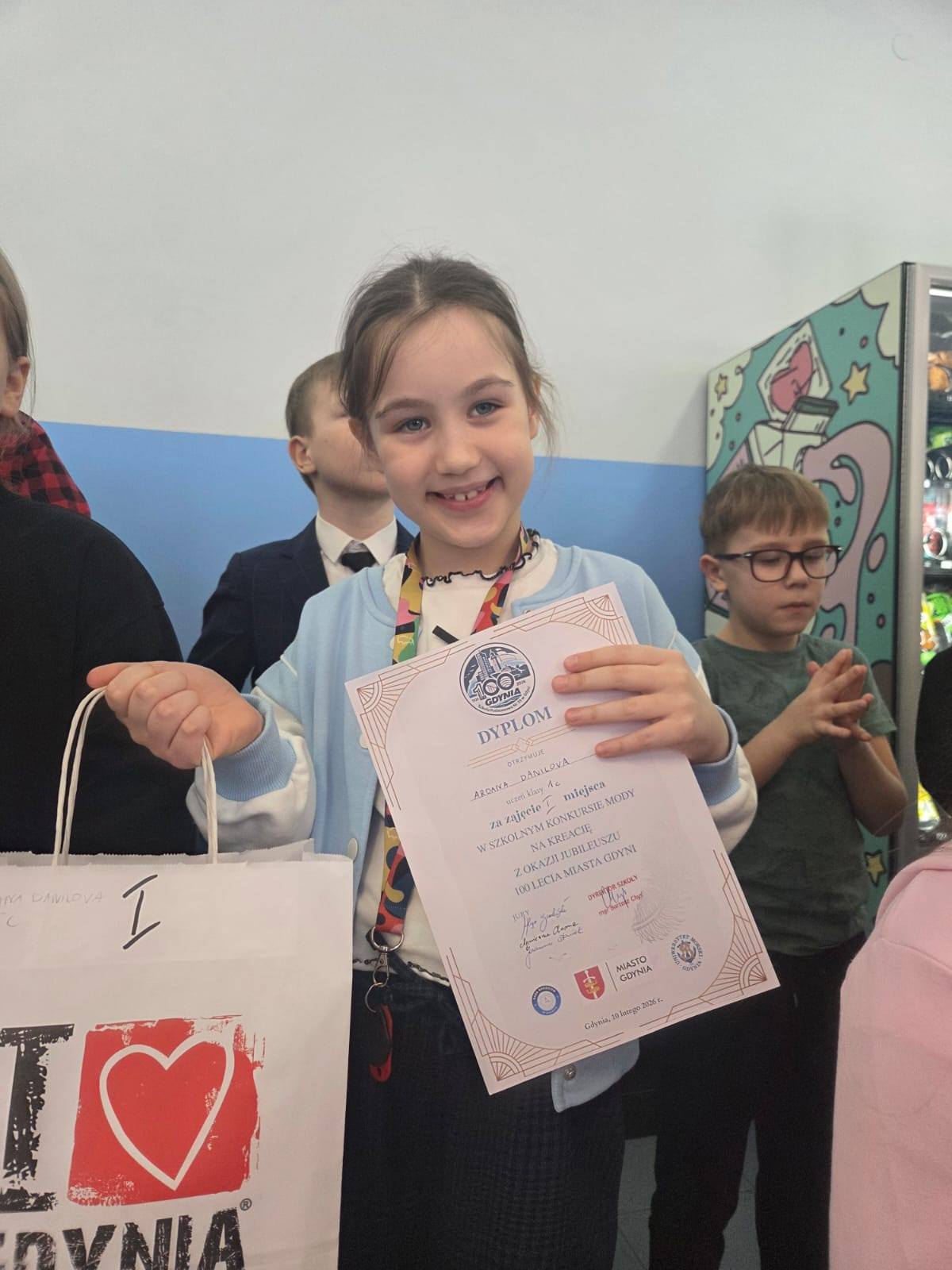 W dniu dzisiejszym podczas apeli porządkowych Pan dyrektor Bartosz Chyś wręczył nagrody laureatom konkursu modowego zorganizowanego przaz Biblioteka z wiatrem w żaglach Szkoły Podstawowej nr 39 w Gdyni w dniu 10 lutego 2026. Dzień urodzin naszego Miasta był fantastycznym, niezapomnianym i olśniewajacym wydarzeniem! Bardzo wielu uczniów , a także nauczycieli i Pań asystentek wystąpiło we wspaniałych stylizowanych kreacjach. Serdecznie dziękujemy Wszystkim którzy włączyli się w tę zabawę. Do współpracy poprosiliśmy Panią Agnieszkę Chomę i Panią Joannę Stasiak, które jako jurorki konkursu sporządziły relację fotograficzną z wydarzenia i rozstrzygnęły konkurs. Ogółem w kategorii kl.1-3 i kl.4- 8 przyznaliśmy 9 nagród oraz 11 wyróżnień, dodatkowo wyróżnienie honorowe przyznano klasie 6c, która niemal w całości ubrała sie w stylu retro. Pani wicedyrektor Beata Chojnowska-Gąsiorek zaprojektowała jubileuszowe dyplomy, a biblioteka postarała się o nagrody pozyskane od Rady Rodziców, Uniwersytetu Morskiego i Urzędu Miasta Gdyni.