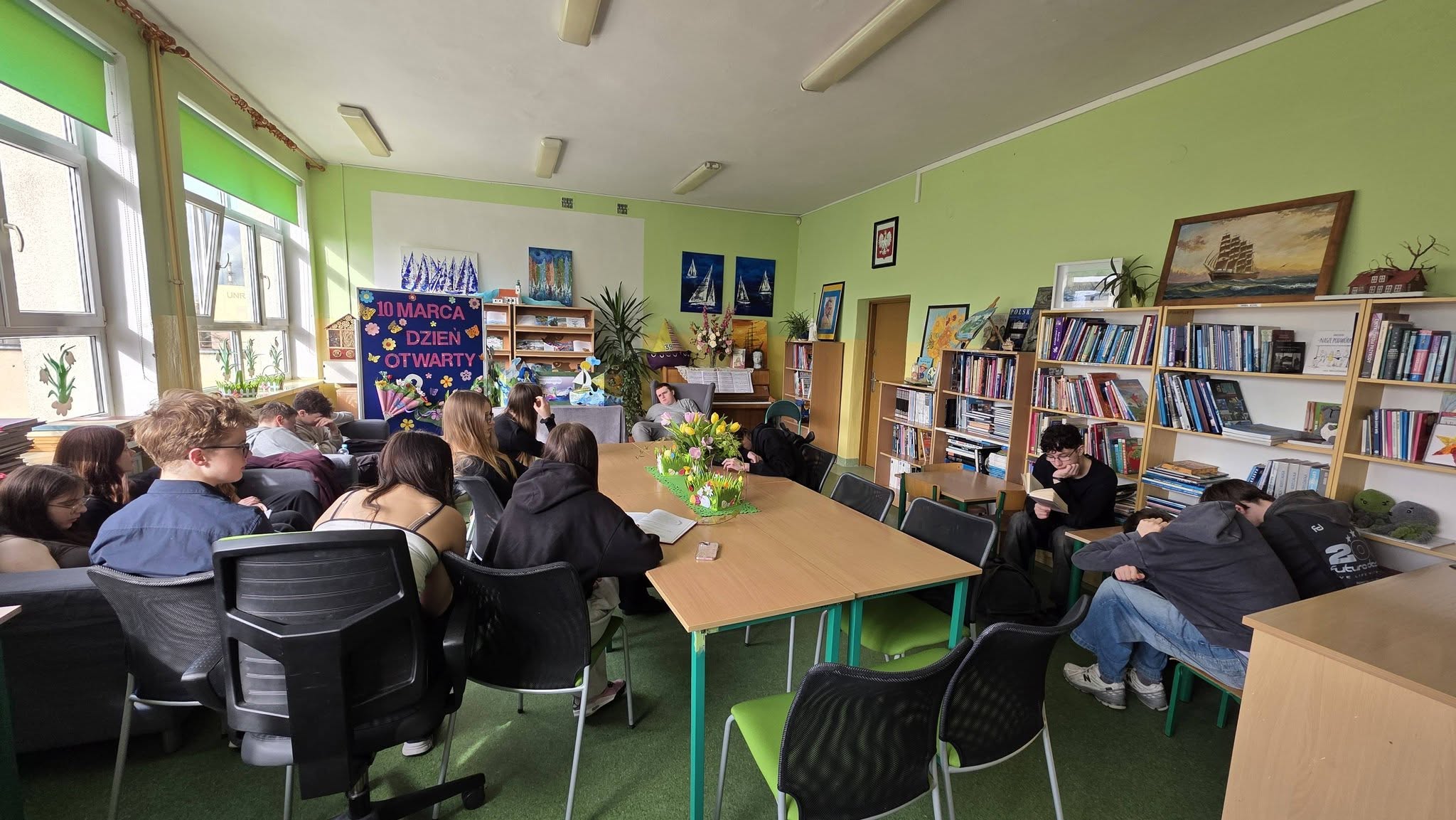 W dniu dzisiejszym odbyła się lekcja biblioteczna w kl. VIII a podczas, której uczniowie rozmawiali o wartościach, które mają ogromne znaczenie w życiu każdego człowieka – miłości i godności. Punktem wyjścia do rozmowy były mądre i pouczające opowiadania Marka Michalaka, byłego Rzecznika Praw Dziecka, który odwiedził naszą szkołę w 2024 roku.