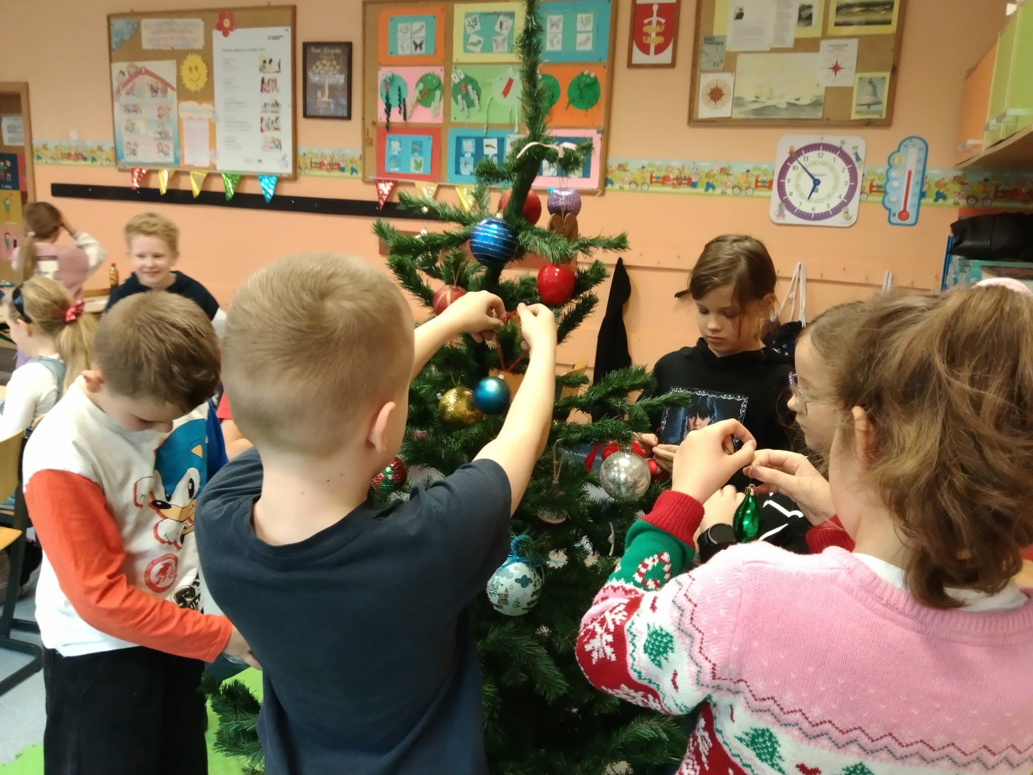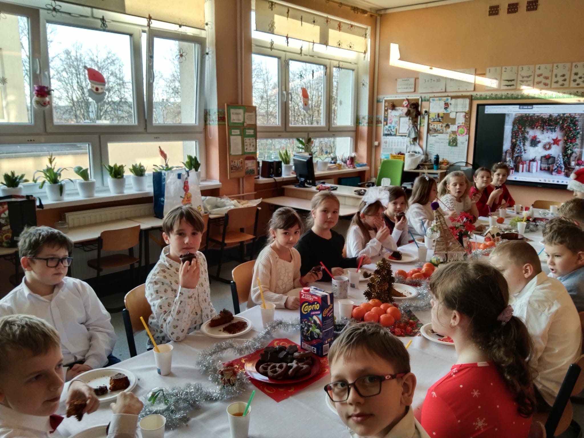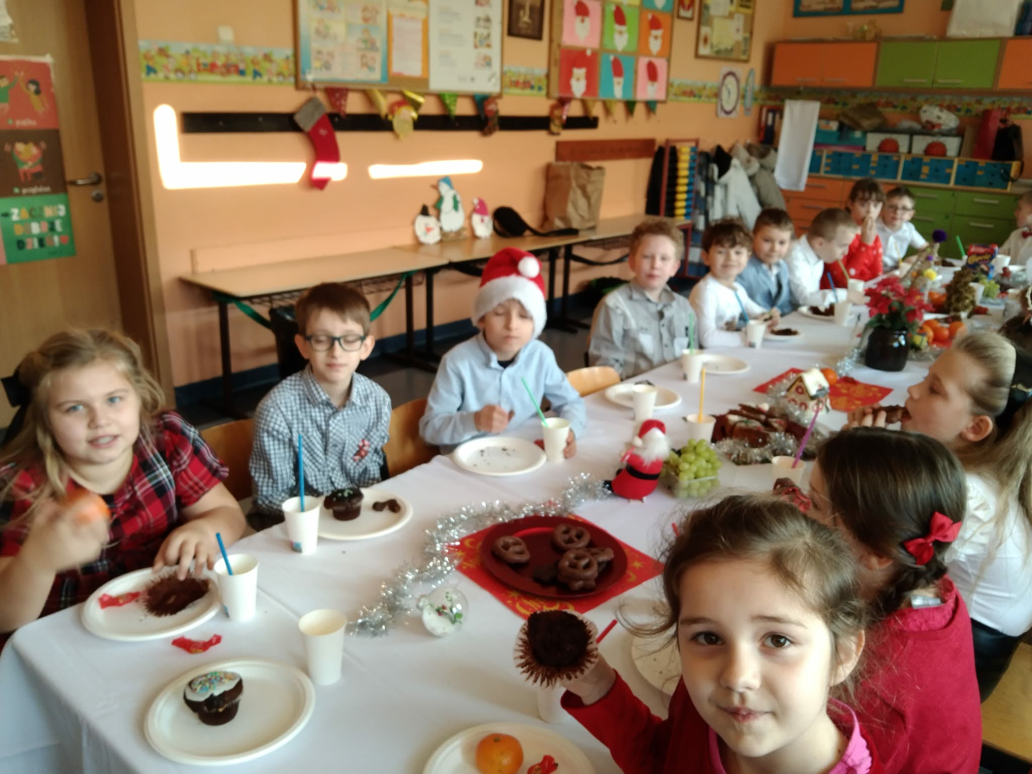 GrudzieÅ„ to miesiÄ…c obfitujÄ…cy w tradycje zwiÄ…zane ze Å›wiÄ™tami Bożego Narodzenia. Z okazji mikoÅ‚ajek wybraliÅ›my siÄ™ do kina na film pt. „Zwierzogród 2". Tego dnia w szkole czekali na nas MikoÅ‚aj i Grinch, którzy obdarowali nas sÅ‚odyczami. Na zajÄ™ciach wspólnie ozdobiliÅ›my klasowÄ… choinkÄ™. PrzygotowaliÅ›my kartki Å›wiÄ…teczne z życzeniami dla dzieci z hospicjum. BraliÅ›my udziaÅ‚ w warsztatach artystyczno – plastycznych, w czasie których wyczarowaliÅ›my przepiÄ™kne kubeczki z motywem Å›wiÄ…tecznym. Razem z Rodzicami przygotowaliÅ›my paczki dla dzieci ze Stowarzyszenia „Dlaczego Nie". Dnia 10 grudnia braliÅ›my udziaÅ‚ w szkolnym Kiermaszu Å›wiÄ…tecznym i zorganizowaliÅ›my klasowe stoisko z loteriÄ… fantowÄ…. Od 15 do 18 grudnia uczestniczyliÅ›my w szkolnym „ÅšwiÄ…tecznym tygodniu". ByÅ‚ DzieÅ„ kolÄ™dnika, DzieÅ„ Å›wiÄ…tecznej czapki, DzieÅ„ Å›wiÄ…tecznej skarpety i DzieÅ„ Å›wiÄ…tecznego swetra. DołączyliÅ›my do ogólnopolskiej akcji czytelniczej "Zaczytane Å›wiÄ™ta 2025" przygotowanej przez panie z naszej szkolnej biblioteki. Dnia 19 grudnia Å›wiÄ™towaliÅ›my w naszej klasie wigiliÄ™. Zgodnie z tradycjÄ… na wigilijnym stole znalazÅ‚o siÄ™ sianko, stroiki, owoce, pierniki i inne sÅ‚odkoÅ›ci. ZÅ‚ożyliÅ›my sobie życzenia bożonarodzeniowe i wspólnie zaÅ›piewaliÅ›my kolÄ™dy i pastoraÅ‚ki. Ostatni dzieÅ„ nauki w naszej klasie w 2025 roku upÅ‚ynÄ…Å‚ w Å›wiÄ…tecznej, peÅ‚nej radoÅ›ci atmosferze. DziÄ™kujemy Rodzicom za przygotowanie wigilijnego stoÅ‚u.