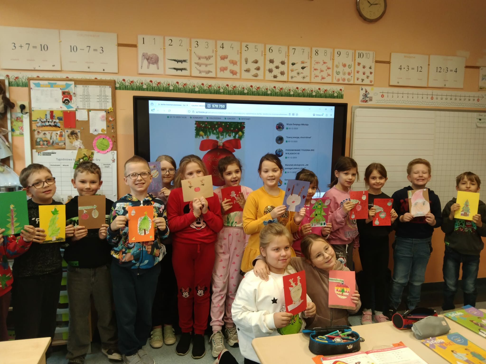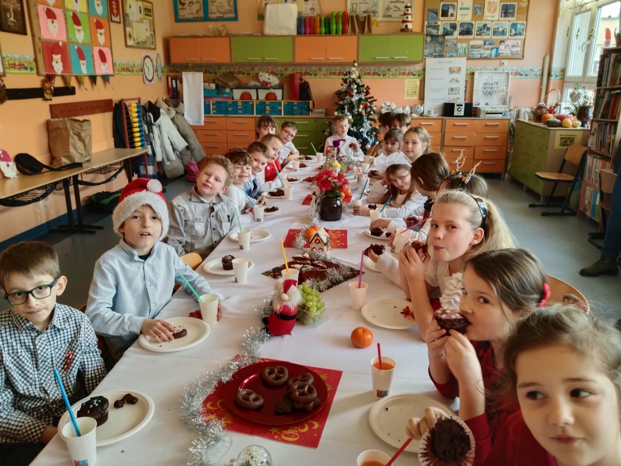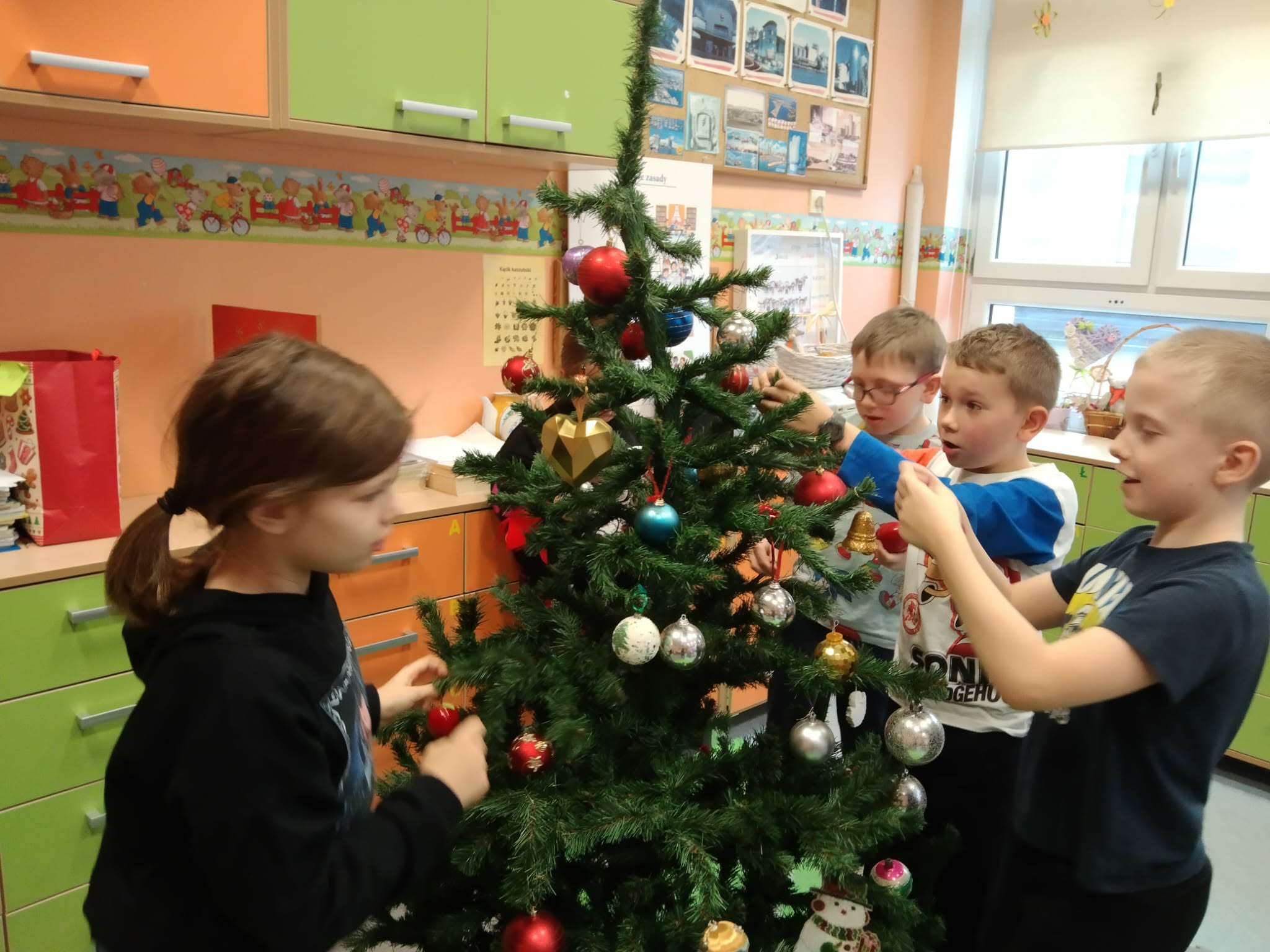 GrudzieÅ„ to miesiÄ…c obfitujÄ…cy w tradycje zwiÄ…zane ze Å›wiÄ™tami Bożego Narodzenia. Z okazji mikoÅ‚ajek wybraliÅ›my siÄ™ do kina na film pt. „Zwierzogród 2". Tego dnia w szkole czekali na nas MikoÅ‚aj i Grinch, którzy obdarowali nas sÅ‚odyczami. Na zajÄ™ciach wspólnie ozdobiliÅ›my klasowÄ… choinkÄ™. PrzygotowaliÅ›my kartki Å›wiÄ…teczne z życzeniami dla dzieci z hospicjum. BraliÅ›my udziaÅ‚ w warsztatach artystyczno – plastycznych, w czasie których wyczarowaliÅ›my przepiÄ™kne kubeczki z motywem Å›wiÄ…tecznym. Razem z Rodzicami przygotowaliÅ›my paczki dla dzieci ze Stowarzyszenia „Dlaczego Nie". Dnia 10 grudnia braliÅ›my udziaÅ‚ w szkolnym Kiermaszu Å›wiÄ…tecznym i zorganizowaliÅ›my klasowe stoisko z loteriÄ… fantowÄ…. Od 15 do 18 grudnia uczestniczyliÅ›my w szkolnym „ÅšwiÄ…tecznym tygodniu". ByÅ‚ DzieÅ„ kolÄ™dnika, DzieÅ„ Å›wiÄ…tecznej czapki, DzieÅ„ Å›wiÄ…tecznej skarpety i DzieÅ„ Å›wiÄ…tecznego swetra. DołączyliÅ›my do ogólnopolskiej akcji czytelniczej "Zaczytane Å›wiÄ™ta 2025" przygotowanej przez panie z naszej szkolnej biblioteki. Dnia 19 grudnia Å›wiÄ™towaliÅ›my w naszej klasie wigiliÄ™. Zgodnie z tradycjÄ… na wigilijnym stole znalazÅ‚o siÄ™ sianko, stroiki, owoce, pierniki i inne sÅ‚odkoÅ›ci. ZÅ‚ożyliÅ›my sobie życzenia bożonarodzeniowe i wspólnie zaÅ›piewaliÅ›my kolÄ™dy i pastoraÅ‚ki. Ostatni dzieÅ„ nauki w naszej klasie w 2025 roku upÅ‚ynÄ…Å‚ w Å›wiÄ…tecznej, peÅ‚nej radoÅ›ci atmosferze. DziÄ™kujemy Rodzicom za przygotowanie wigilijnego stoÅ‚u.
