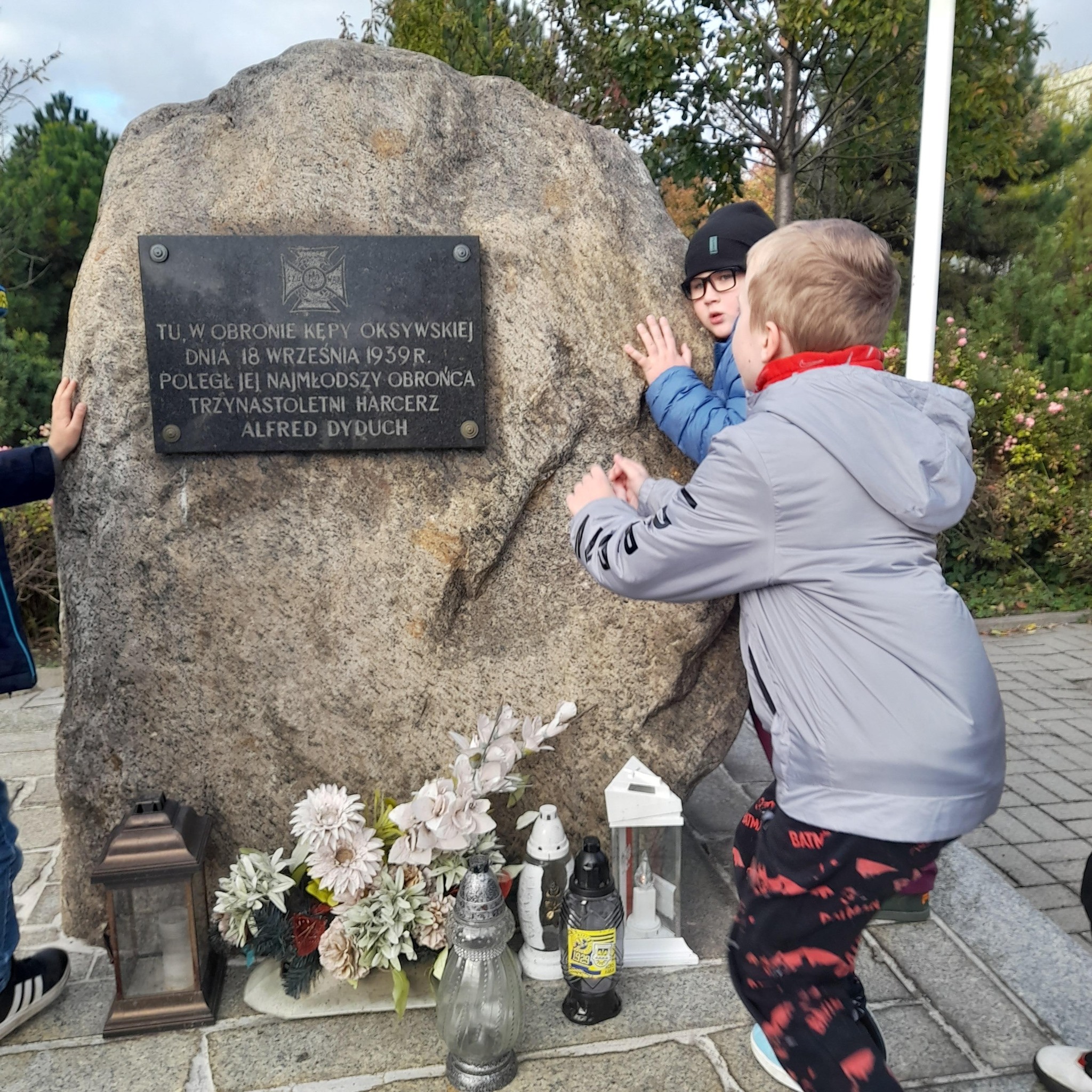 Dziś nasze świetliczaki odwiedziły wyjątkowe miejsce. To pamiątkowy obelisk poświęcony małemu obrońcy Gdyni znajdujący się przy ul. Adm. Józefa Unruga na wysokości bloku nr 70. Widnieje tu napis „Tu w obronie Kępy Oksywskiej dnia 18 września 1939 r. poległ jej najmłodszy obrońca trzynastoletni harcerz Alfred Dyduch”. Zapaliliśmy świeczki, postawiliśmy kwiaty. Była też chwila zadumy i modlitwy.