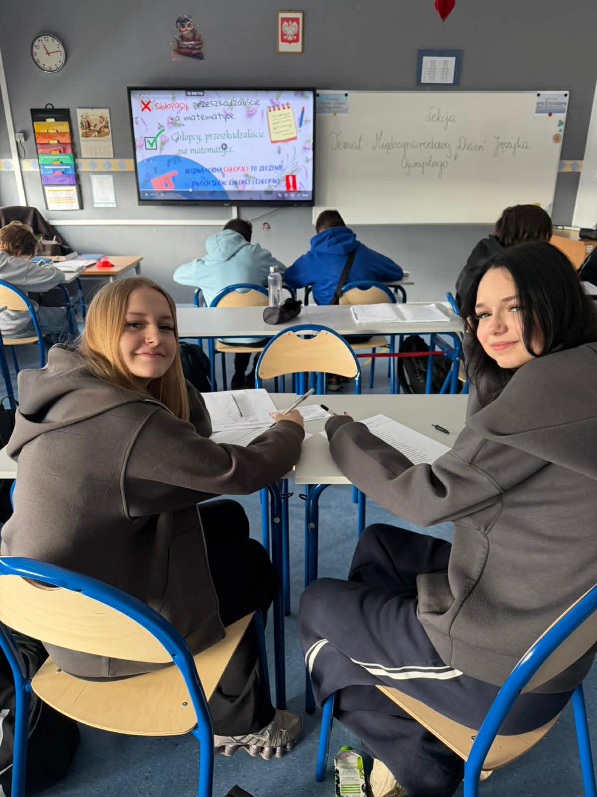 Na szkolnym korytarzu pojawiła się gazetka tematyczna przybliżająca ideę tego dnia oraz przypominająca, jak ważną rolę język ojczysty odgrywa w budowaniu naszej tożsamości i pielęgnowaniu kultury.