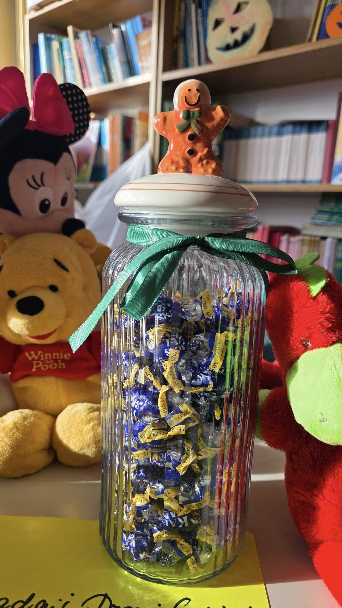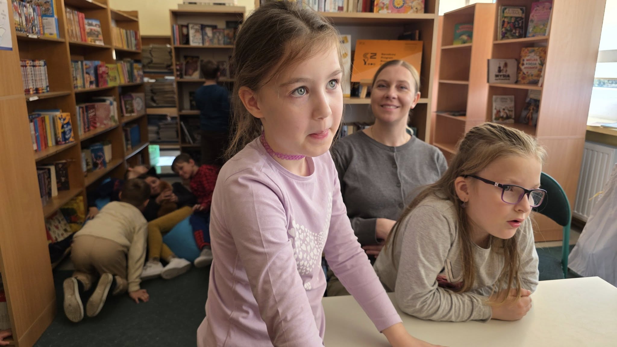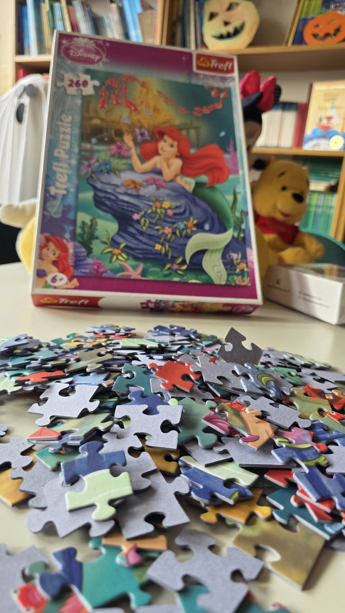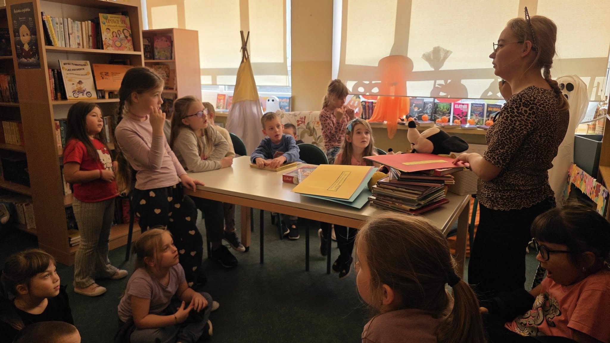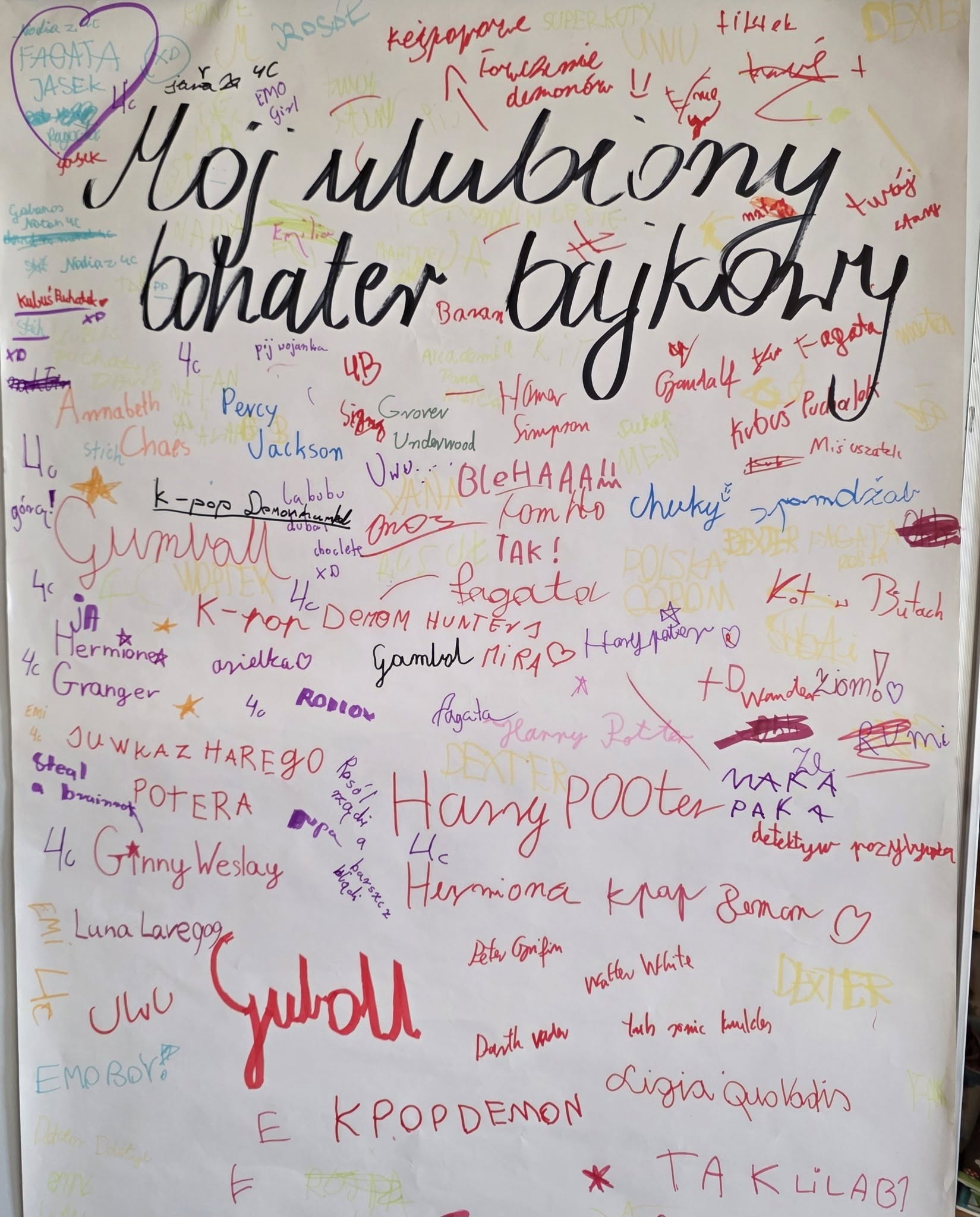 Nasza biblioteka zamieniła się dzisiaj w miejsce pełne wesołości i śmiechu, bowiem w nasze progi przybyły bajkowe postacie m.in. Mała Syrenka, Kot w butach, Spider-Man, Hermiona z Hogwartu. Czytaliśmy bajkę i układaliśmy puzzle pt. ”Mała syrenka” , wypisaliśmy naszych ulubionych bajkowych i baśniowych bohaterów, uczniowie szacowali ile cukierków (dar Rady Rodziców) było w bajkowym słoiku, a zwyciężczyni otrzymała w nagrodę książkę pt. „Mały książę”, słuchawki i długopis ufundowane przez bibliotekę. Ponadto klasa Ic wraz z Panią Kornelią i Panią Joanną przybyły na lekcję biblioteczną, podczas której uczniowie zapoznali się z zasadami funkcjonowania biblioteki szkolnej rozpoznawali bajkowe rekwizyty i rozwiązywali zagadki oraz opowiedzieli o swoich ulubionych bajkach i baśniach, otrzymując na koniec spotkania pamiątkowe zakładki do książek. Dzieci z radością pozowały do zdjęć z Panią bibliotekarką Alicją i nową Panią bibliotekarką Kamilą. Fantastycznie spędziliśmy ten wspólny magiczny czas.