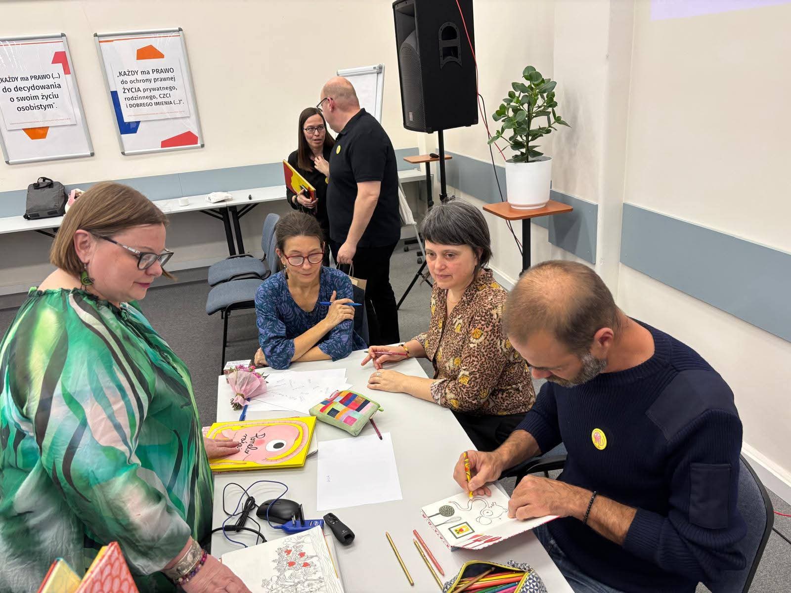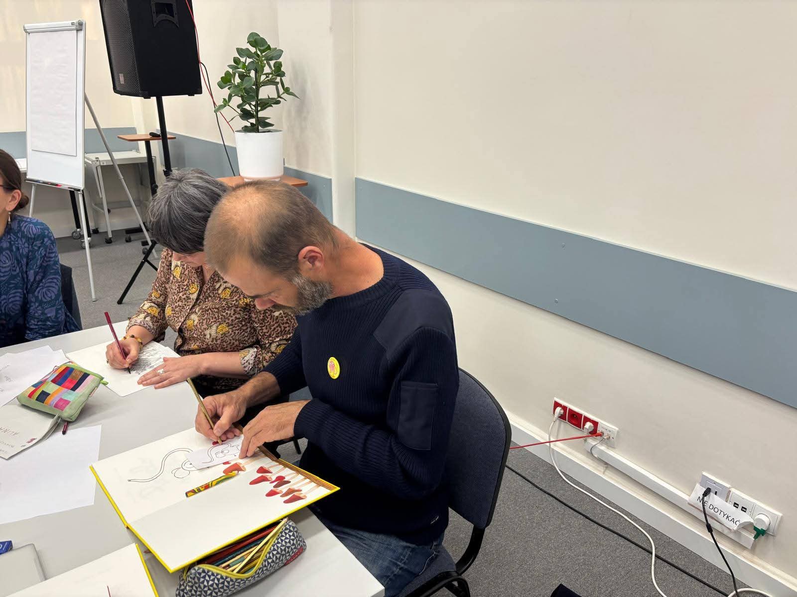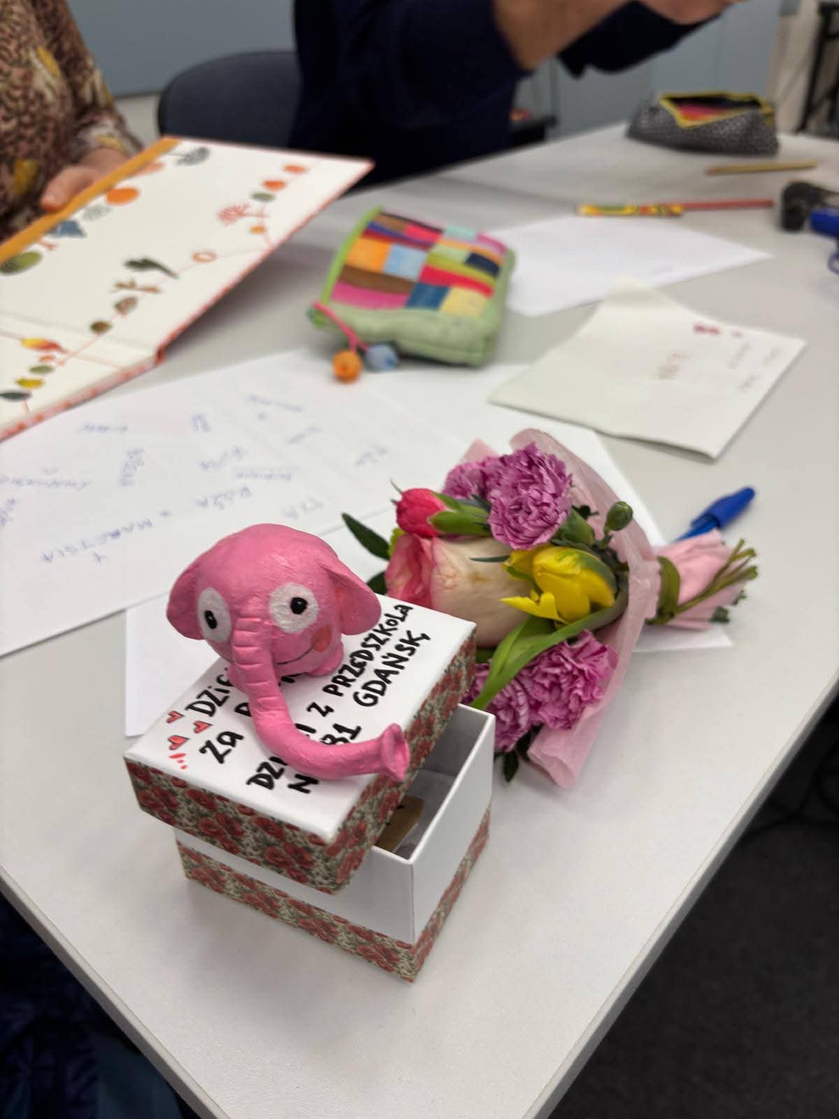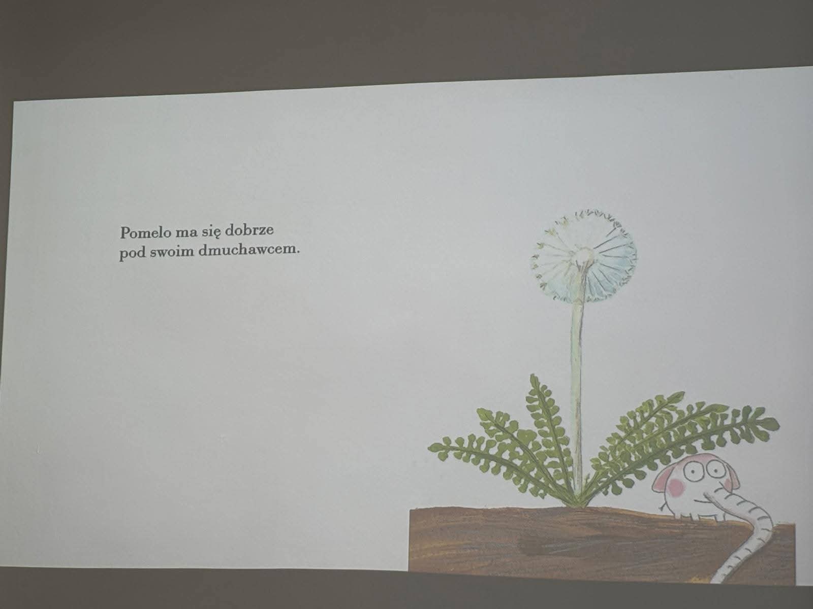 Czy znacie słonika Pomelo, który ma bardzo długą trąbę i mieszka pod dmuchawcem? Jego przygody śledzą dzieci w wielu krajach (książka została przetłumaczona na 12 języków!). Pani Iza i pani Iwona miały przyjemność spotkać twórców tego małego bohatera w Pomorskim Centrum Doskonalenia Nauczycieli. Autorka tekstu, pani Ramona Badescu, i rysownik, pan Benjamin Chaud, w niezwykle ciekawy i wesoły sposób opowiadali o tym, jak w ich życiu pojawił się Pomelo, skąd czerpią pomysły i jak trzeba się natrudzić, żeby stworzyć książkę, która spodoba się dzieciom. To było niezapomniane spotkanie!