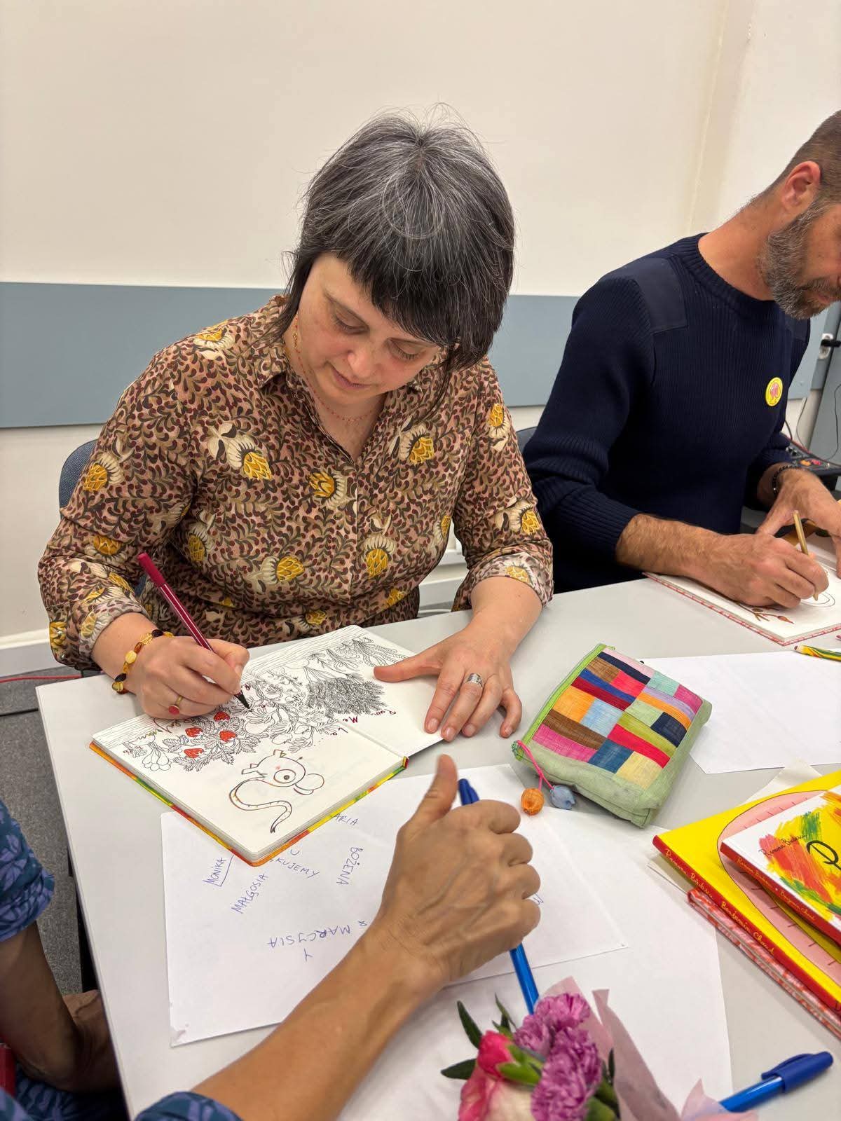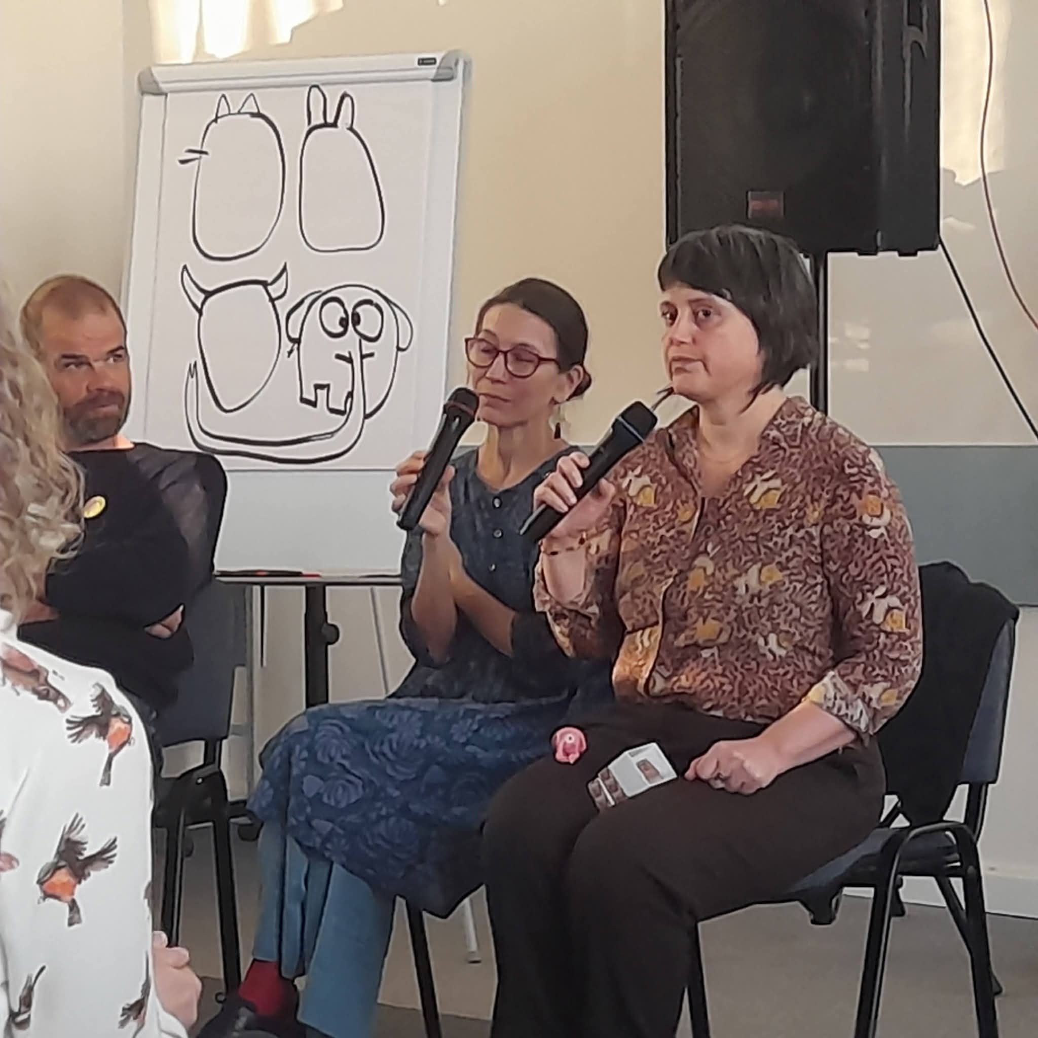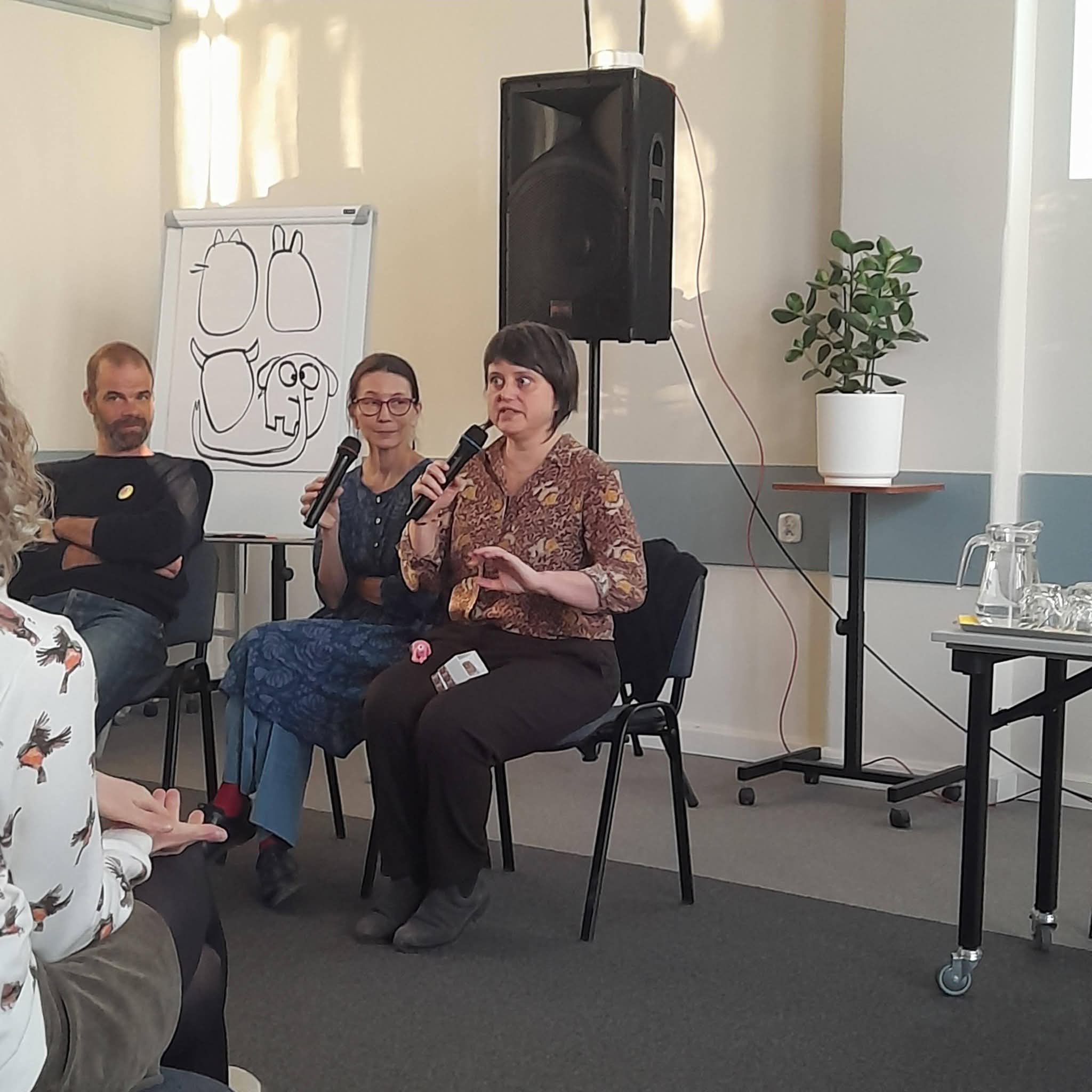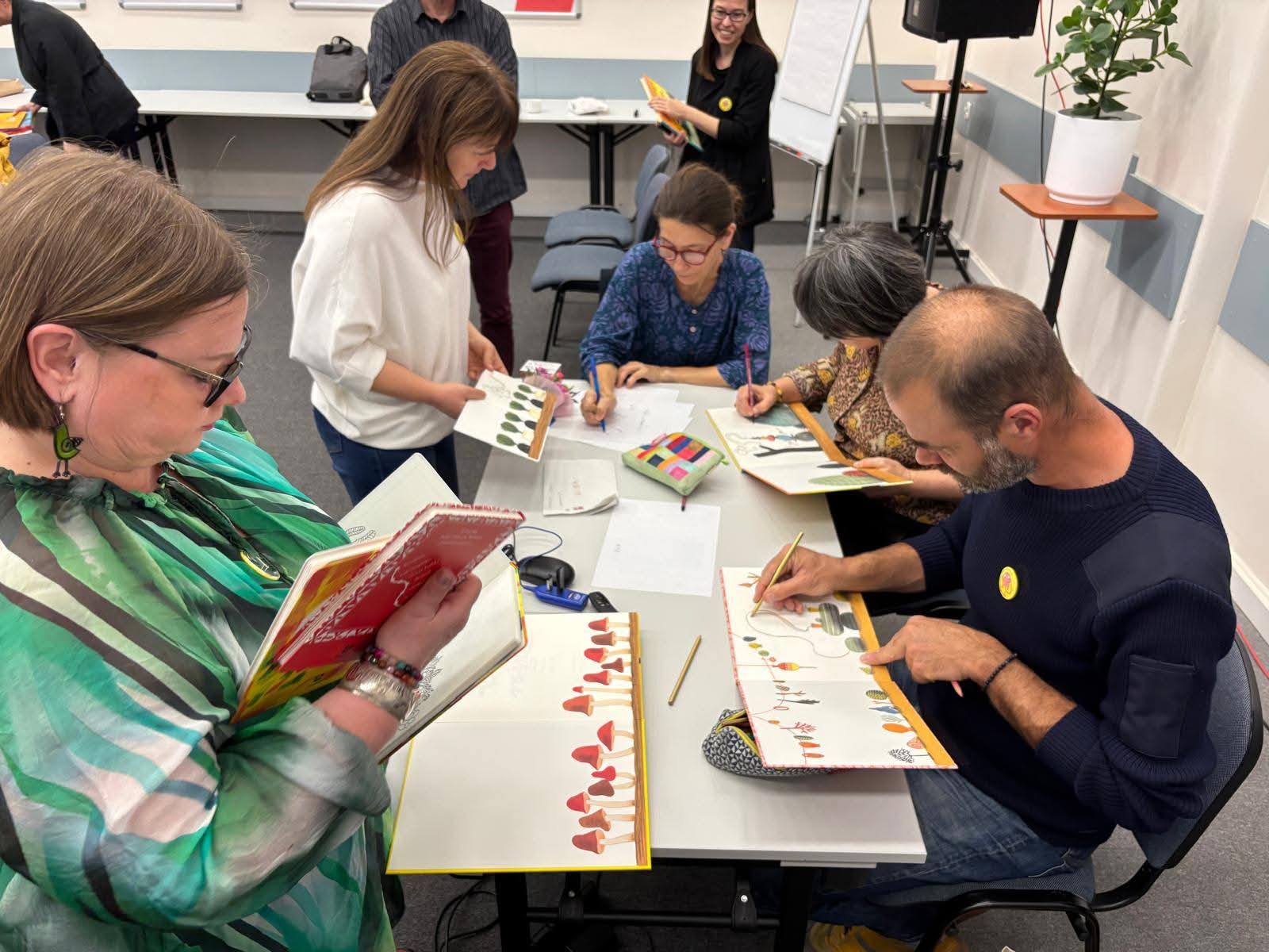 Czy znacie słonika Pomelo, który ma bardzo długą trąbę i mieszka pod dmuchawcem? Jego przygody śledzą dzieci w wielu krajach (książka została przetłumaczona na 12 języków!). Pani Iza i pani Iwona miały przyjemność spotkać twórców tego małego bohatera w Pomorskim Centrum Doskonalenia Nauczycieli. Autorka tekstu, pani Ramona Badescu, i rysownik, pan Benjamin Chaud, w niezwykle ciekawy i wesoły sposób opowiadali o tym, jak w ich życiu pojawił się Pomelo, skąd czerpią pomysły i jak trzeba się natrudzić, żeby stworzyć książkę, która spodoba się dzieciom. To było niezapomniane spotkanie!