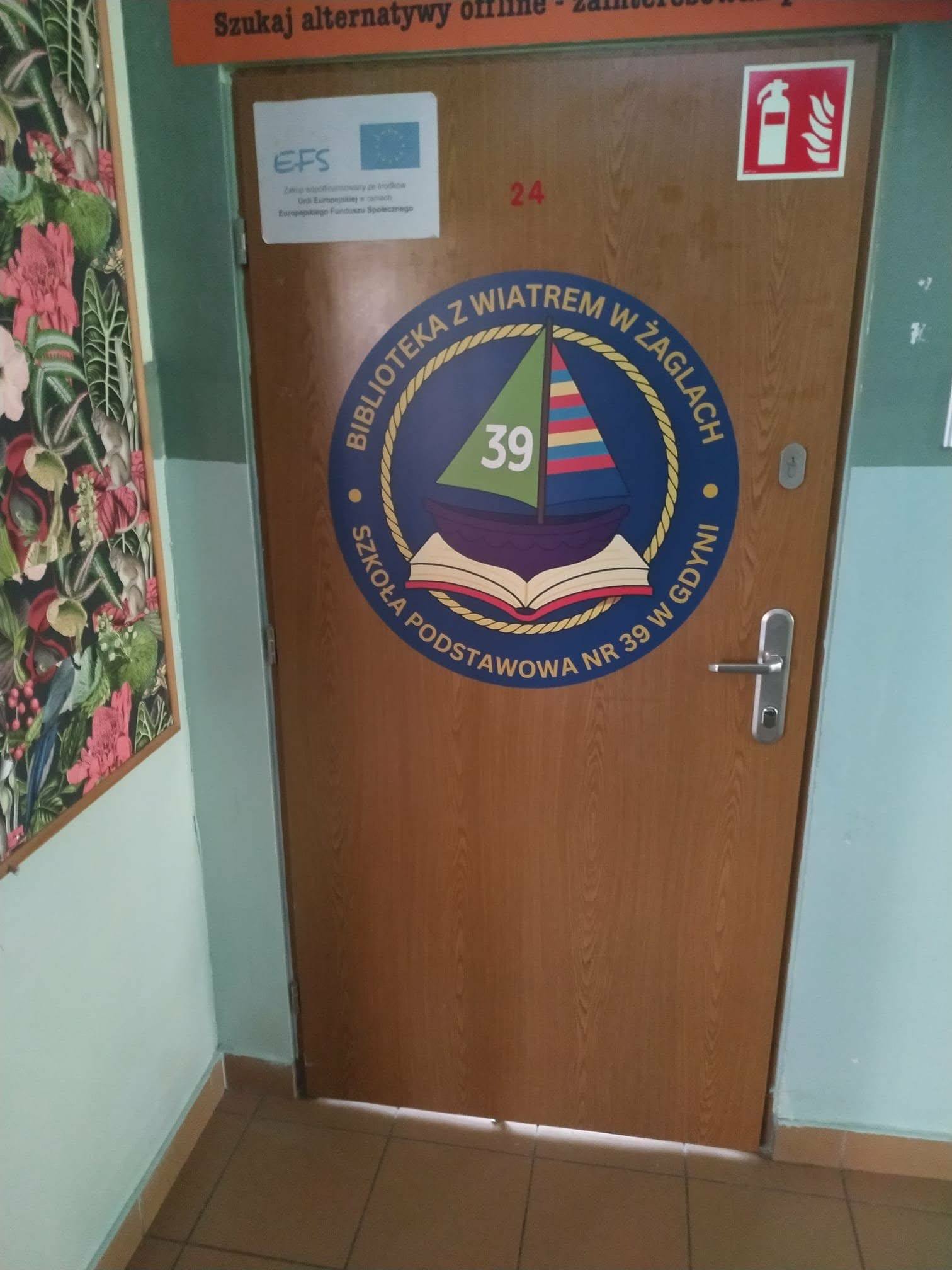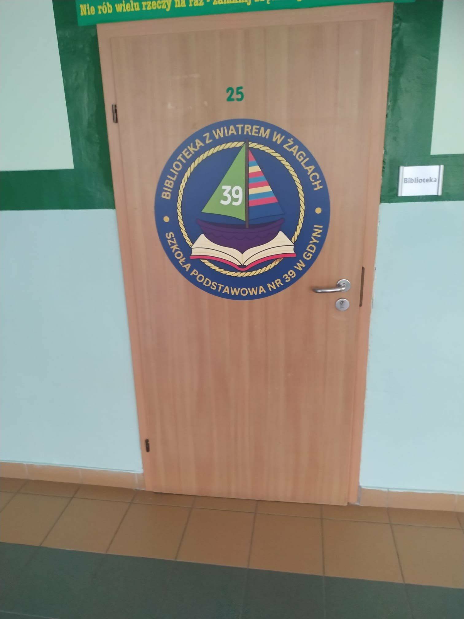 Zmienia się przestrzeń naszej szkoły, a na drzwiach wypożyczalni i czytelni pojawiło sie logo naszej Biblioteka z wiatrem w żaglach Szkoły Podstawowej nr 39 w Gdyni w postaci Żaglusi płynacej po otwartej księdze, w myśl naszego motta " Dmuchamy w Wasze żagle, abyście mogli wypłynąć na szerokie wody". Dyrekcji serdecznie dziękujemy za ten prezent i zapraszamy uczniów do odwiedzania biblioteki oraz wypożyczania lektur i kolejnych nowości czytelniczych.