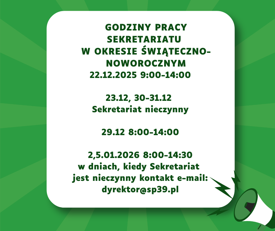 Organizacja pracy szkoły w okresie świąteczno- noworocznym