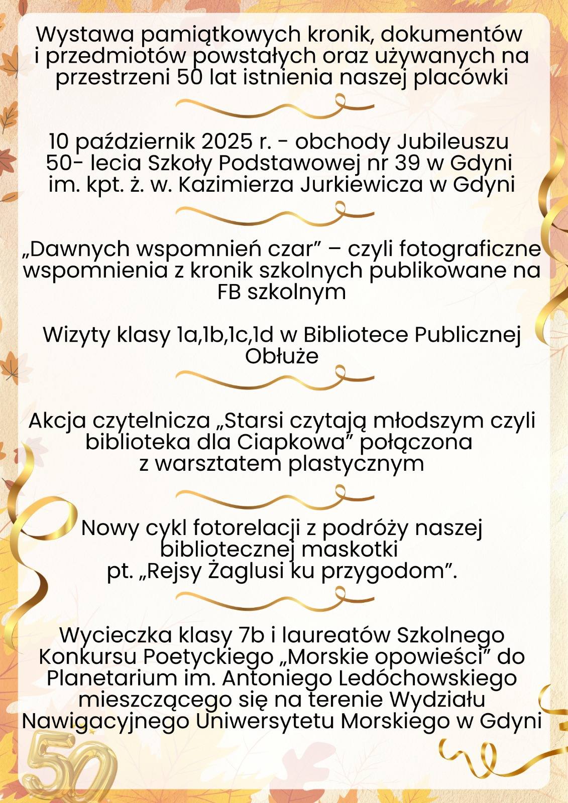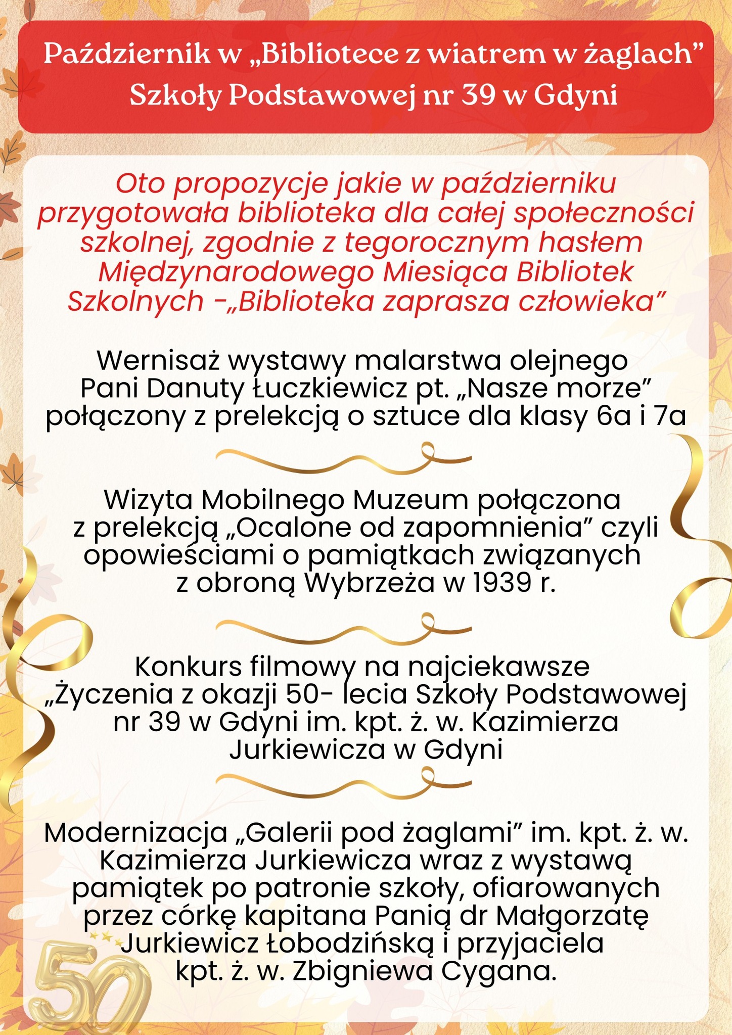 Pamiętajcie – biblioteka zawsze ma dla Was otwarte drzwi. Bądźcie ciekawi świta, twórczy, poszukujący włączcie się i czerpcie przyjemność z celebrowania Jubileuszu 50-lecia naszej szkoły, do którego przygotowania trwają już pełną parą.