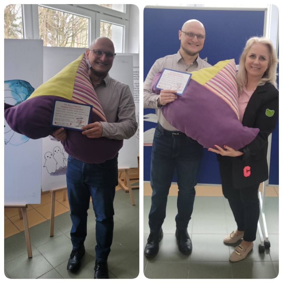 Cieszymy się bardzo, że nasza biblioteczna maskotka Żaglusia uszyta przez Panią wicedyrektor Beatę Chojnowską-Gąsiorek i Panią bibliotekarkę Alicję Budzińską została wylicytowana i trafiła w tak wspaniałe ręce .