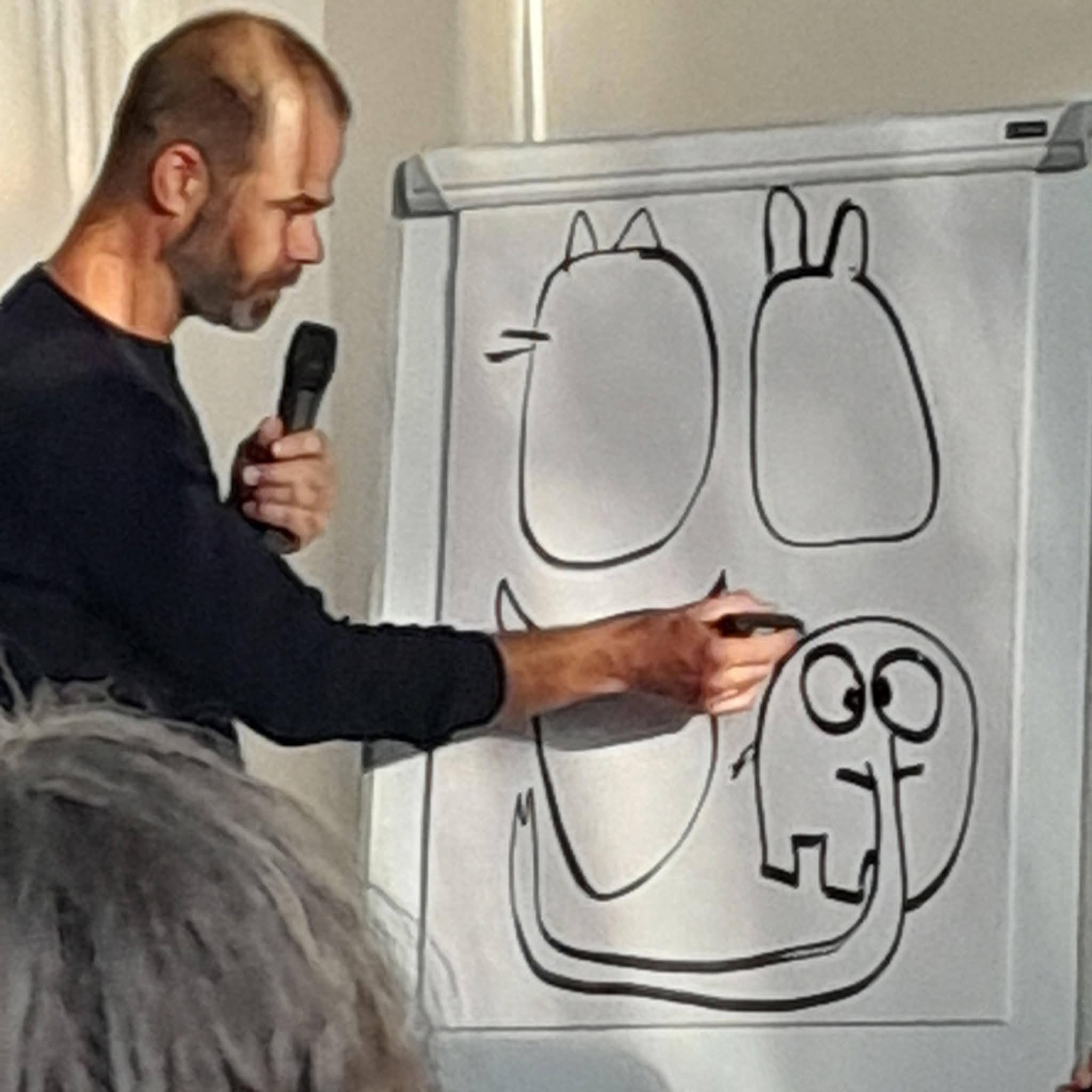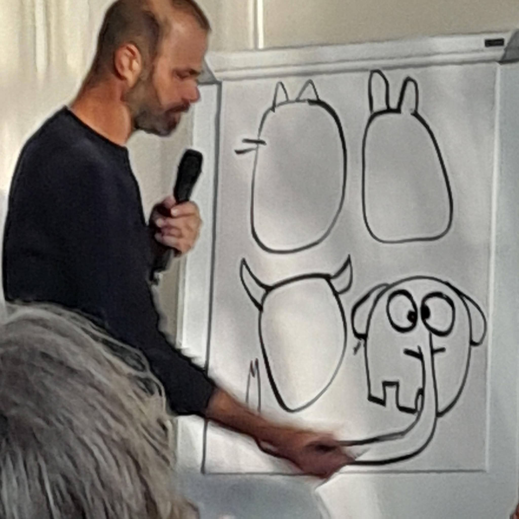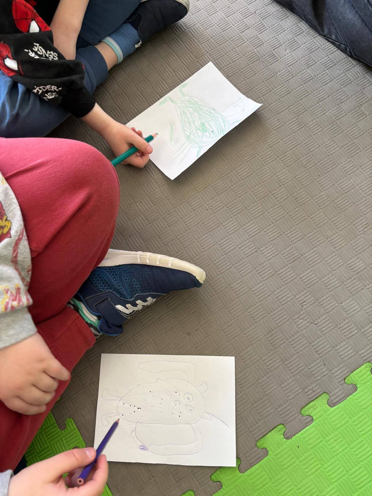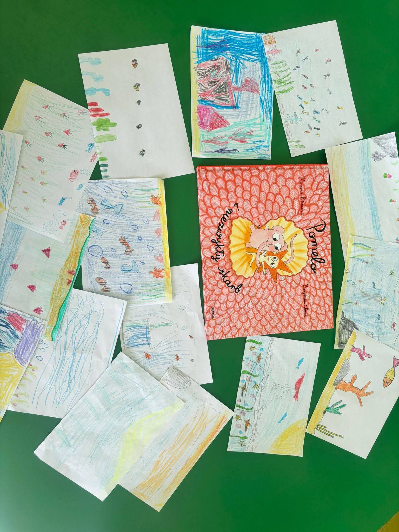 Ten niezwykły, filozoficzny słonik zawitał na zajęcia w naszej świetlicy. Korzystając ze wskazówek jego ilustratora odkrywaliśmy w sobie talenty plastyczne. Zaczęliśmy od... ziemniaka. A potem dorysowaliśmy uszy i okazało się, że stworzyliśmy wesołe, indywidualne portrety zwierząt. Potem odkrywaliśmy z Pomelo podwodny świat, efektem tej wyprawy stały się prace " mój podwodny ogród". A jeśli ktoś chciałby dowiedzieć się, dlaczego na ilustracjach pojawiły się truskawki i inne owoce, to zachęcamy do przeczytania książki "Pomelo i niezwykły skarb" autorstwa Ramony Badescu i Benjamina Chaud.