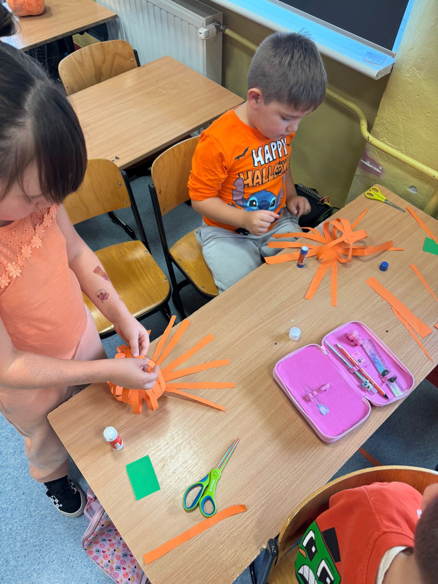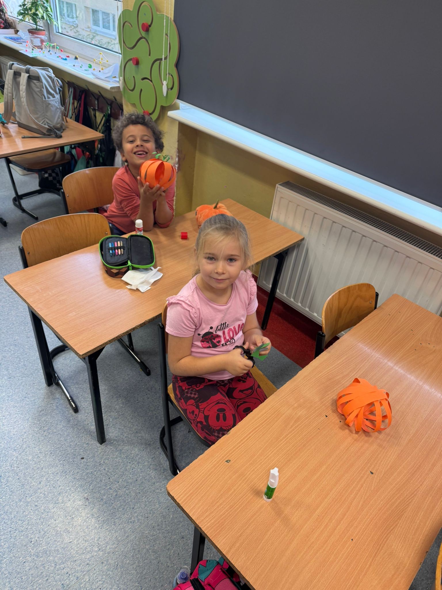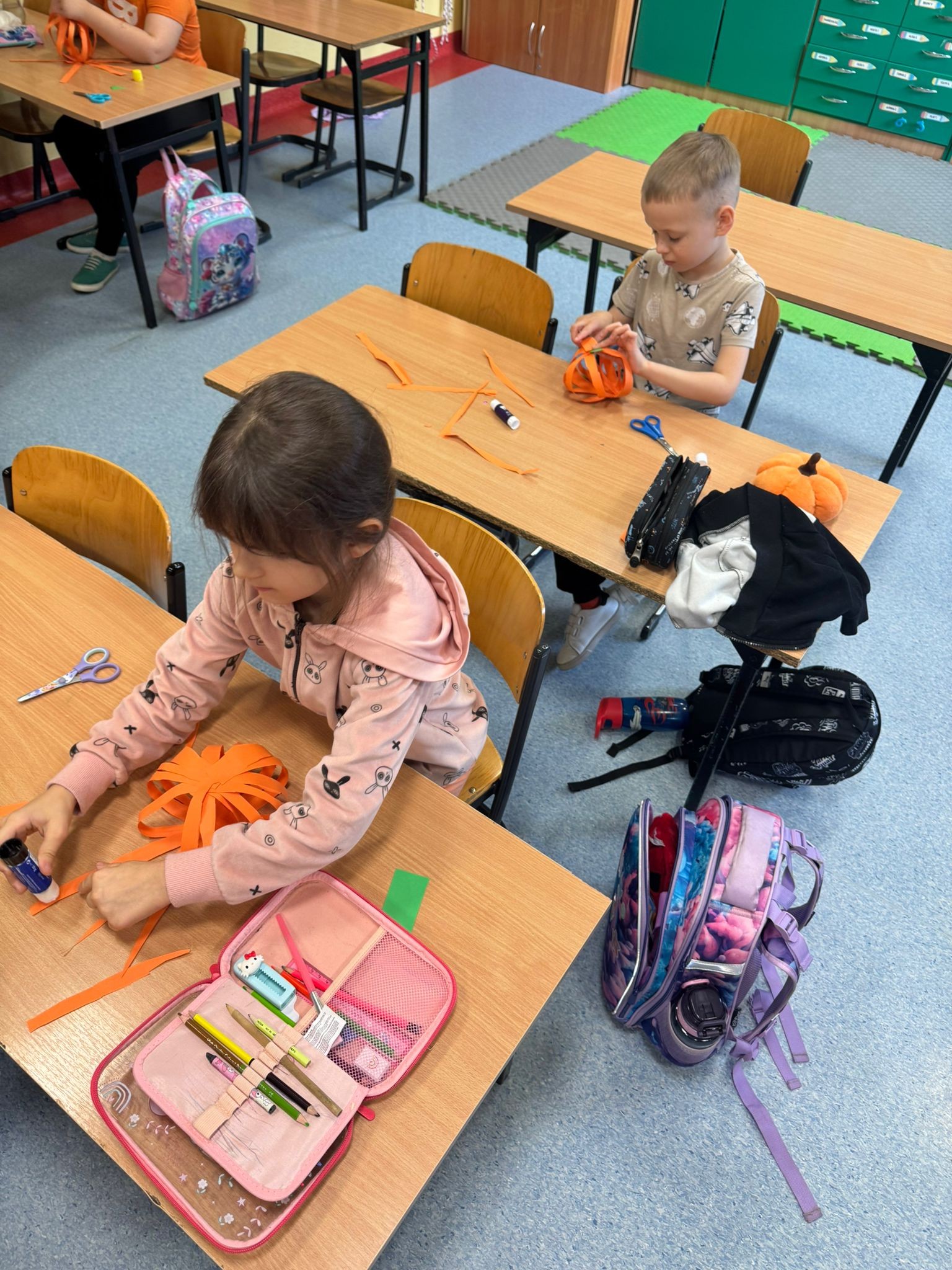 Na zakończenie każdy wykonał własną, papierową dynię, która pięknie ozdobiła naszą klasę.