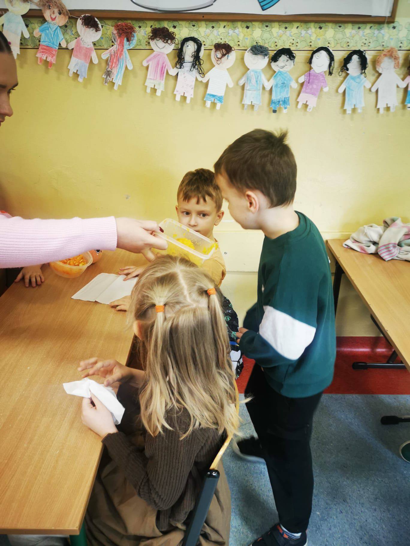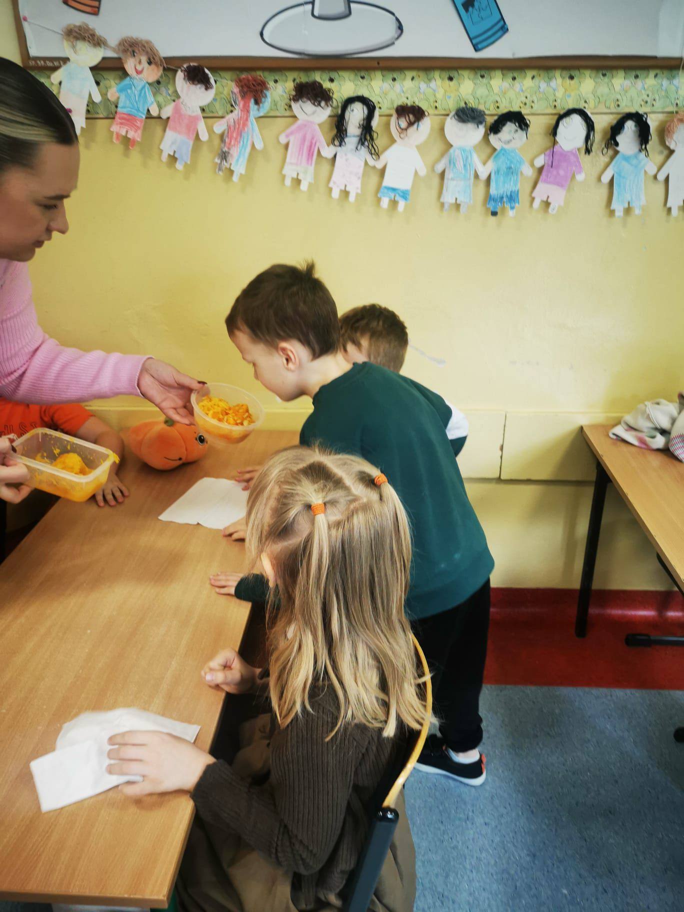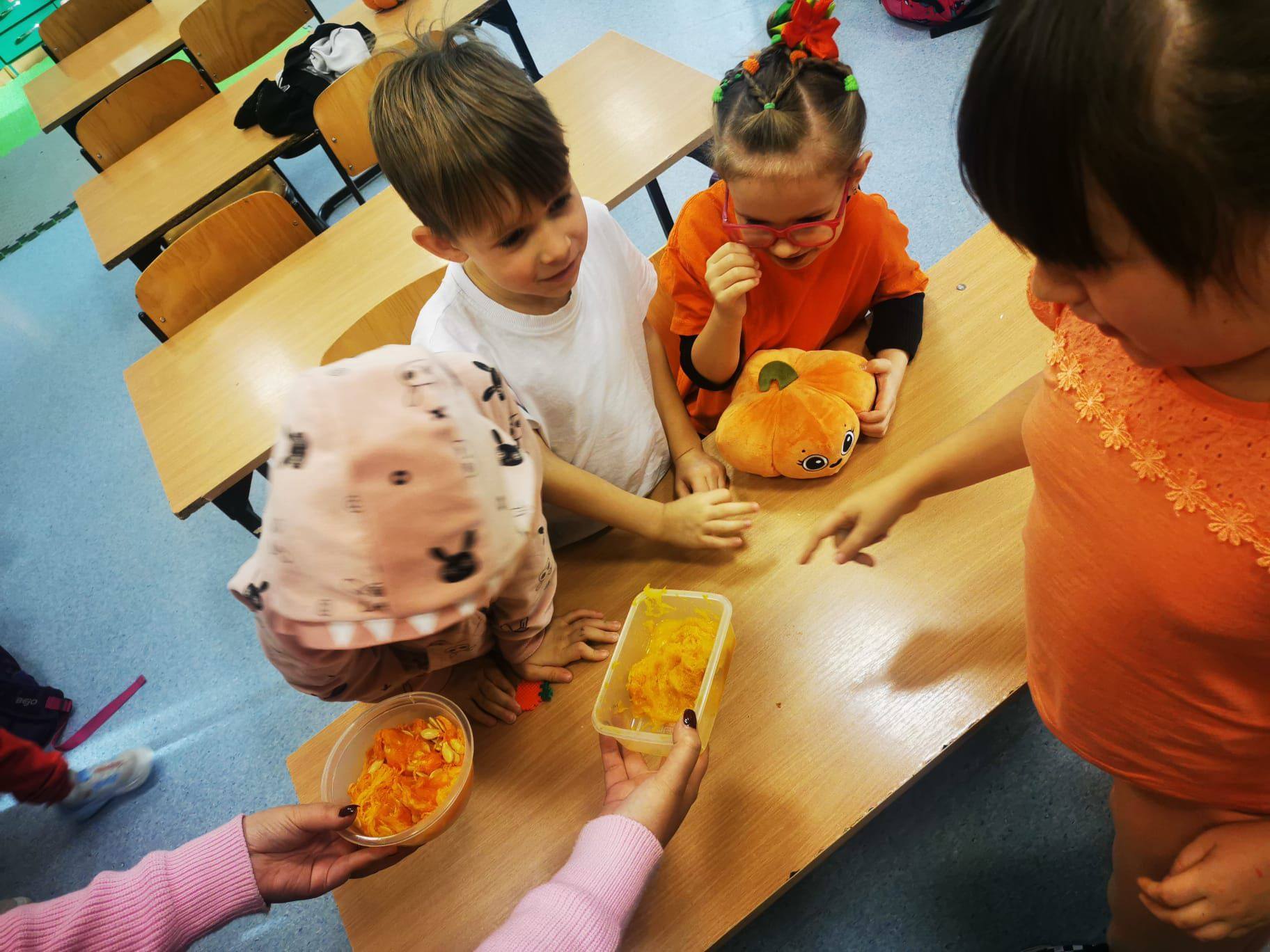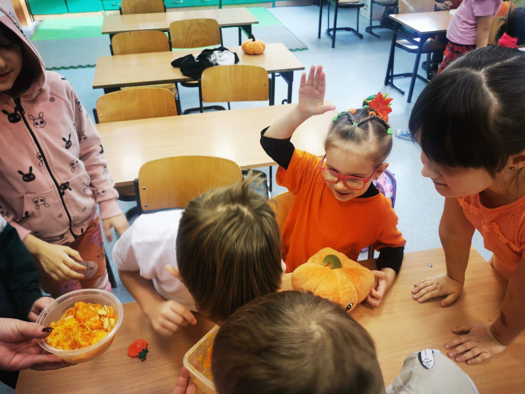 To był wyjątkowy, jesienny czas pełen zabawy i odkrywania. Uczniowie obejrzeli film edukacyjny, dzięki któremu poznali ciekawostki o dyni. Mieli również okazję przyjrzeć się jej z bliska – dotknąć, powąchać, a nawet spróbować pestek dyni!