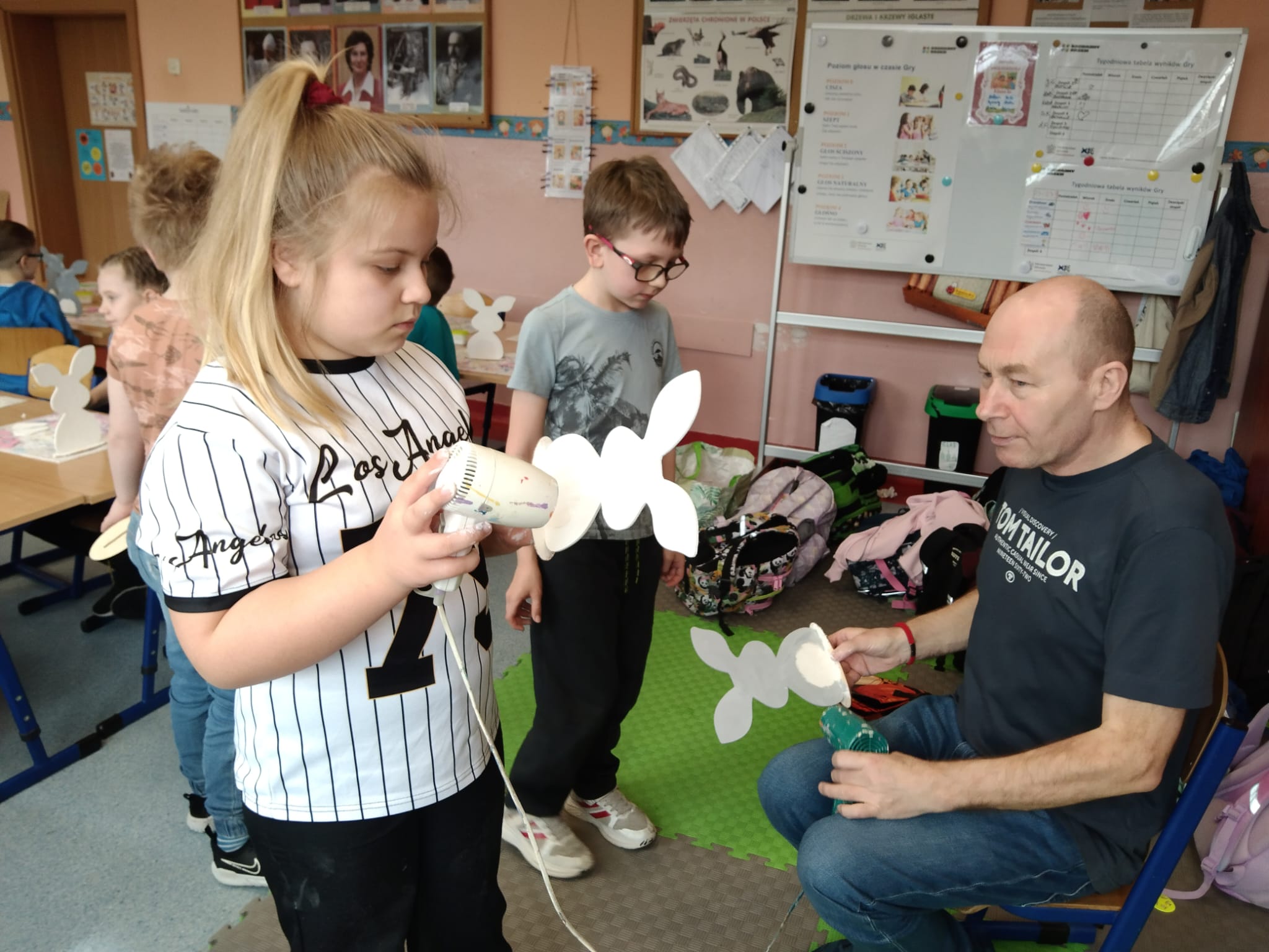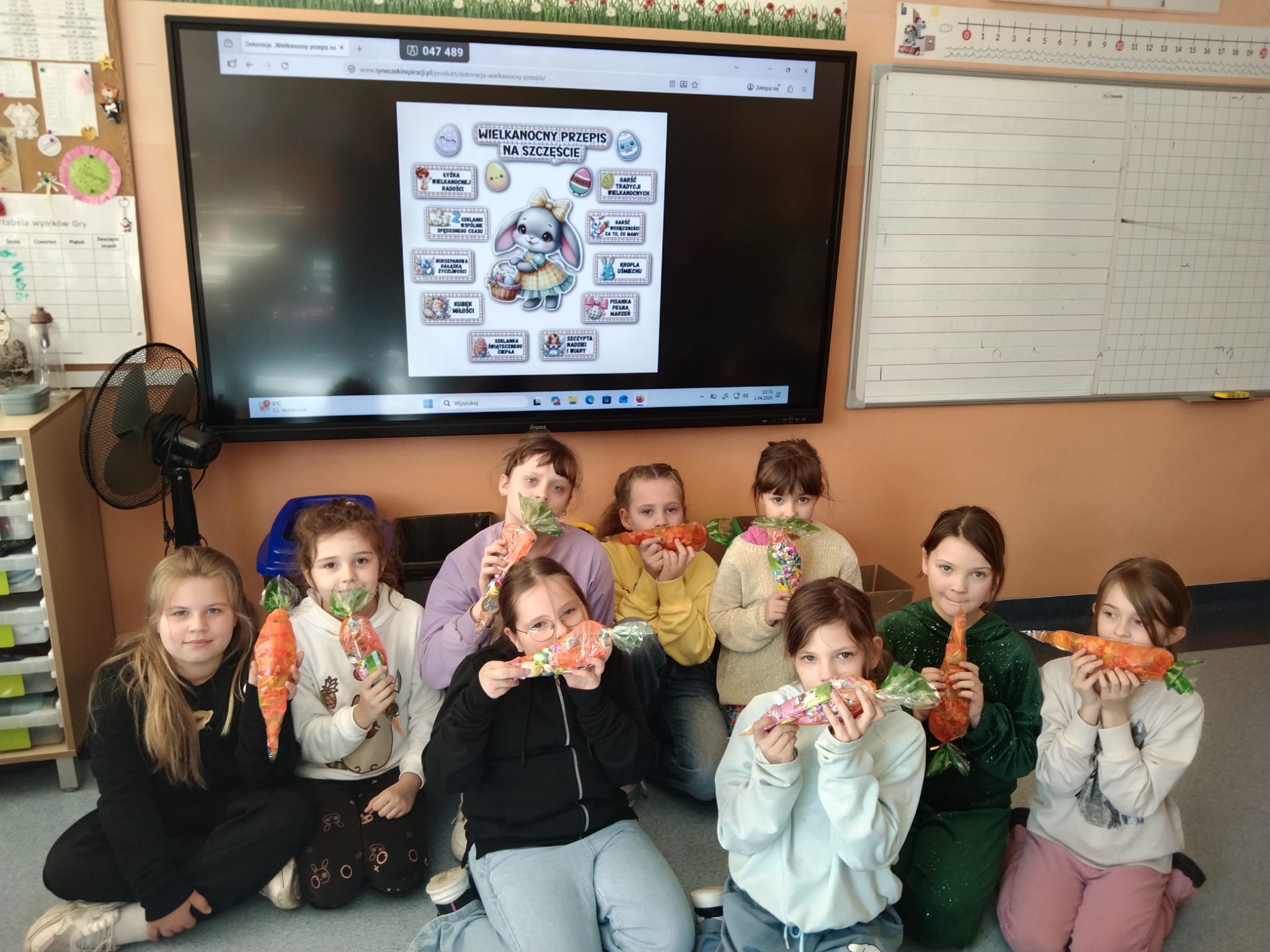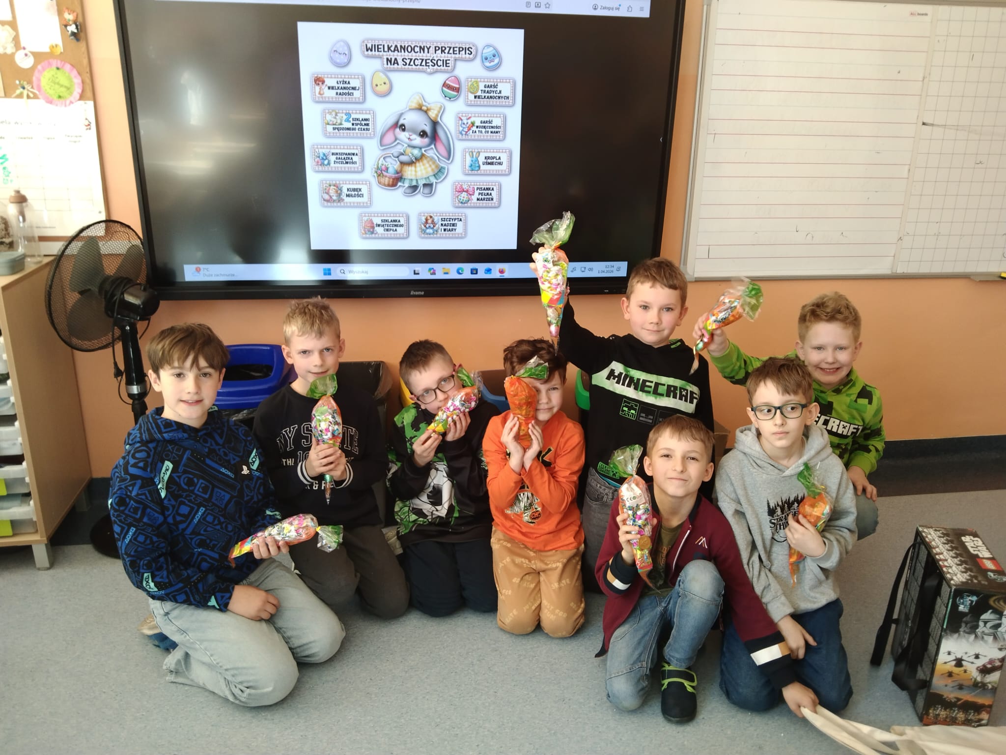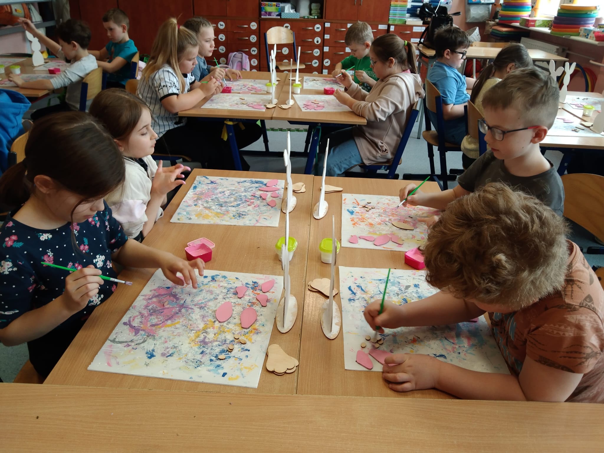 Przygotowania wielkanocne w klasie to doskonała okazja do budowania więzi poprzez wspólną aktywność. Przed świętami dzieci same udekorowały szkolną salę. Brały udział w warsztatach artystyczno-plastycznych i tworzyły Zajączki 3D. Rozwiązywały zagadki i krzyżówki związane tematycznie z symbolami świątecznymi. Przygotowały kartki wielkanocne z życzeniami dla dzieci z hospicjum. Brały udział w zabawach ruchowych i poszukiwały na terenie szkoły prezentów od Zajączka. Oglądały filmy dla dzieci na temat tradycji wielkanocnego koszyczka, śniadania z całą rodziną, śmigusa- dyngusa oraz zwyczajów ludowych w różnych regionach Polski. Wspólne działania wprowadziły wszystkich uczestników w świąteczny, wielkanocny nastrój.