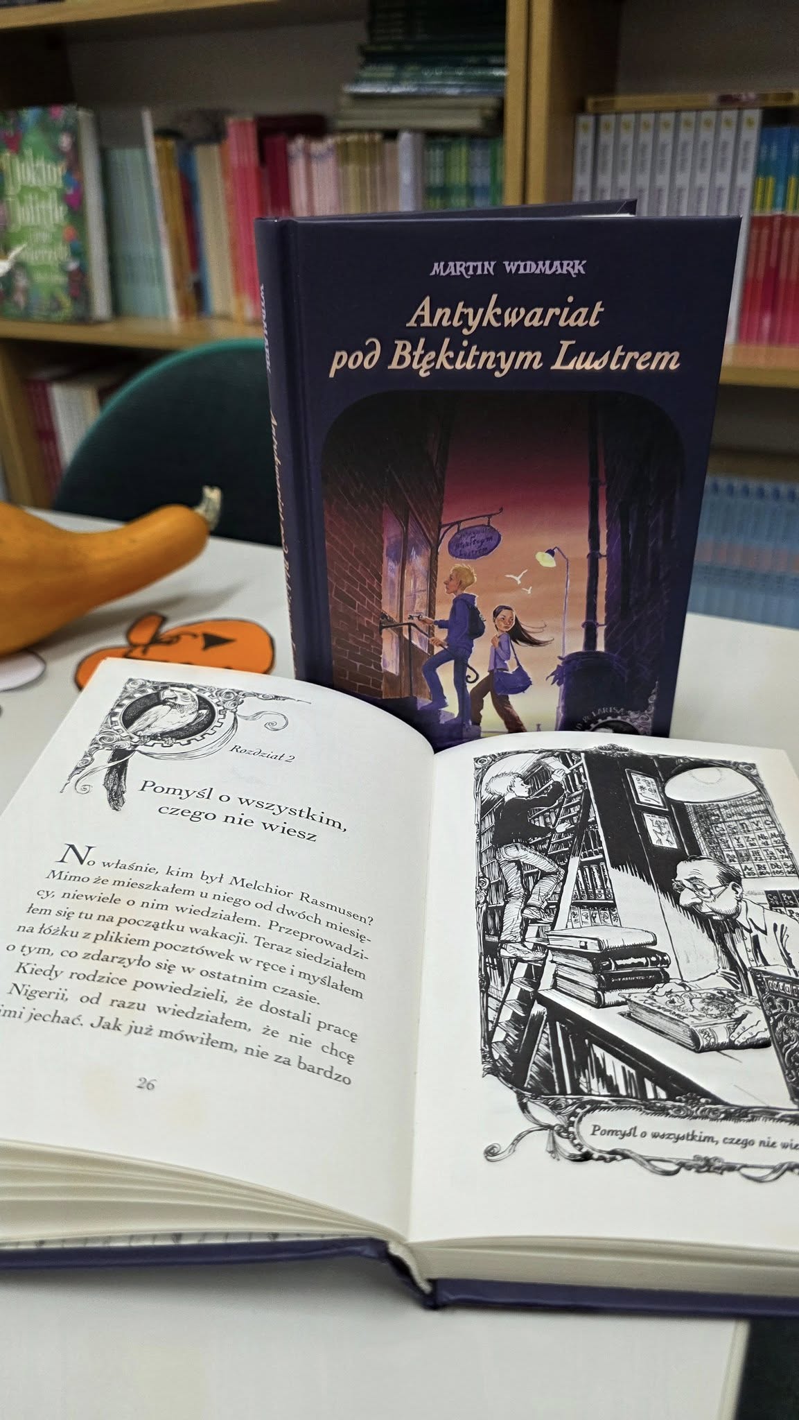 Warsztaty czytelnicze dla klas 4 pt.: Poznajemy serię książek Martina Widmarka ''Dawid i Larisa'' na podstawie cz. 1 ''Antykwariat pod Błękitnym Lustrem''
