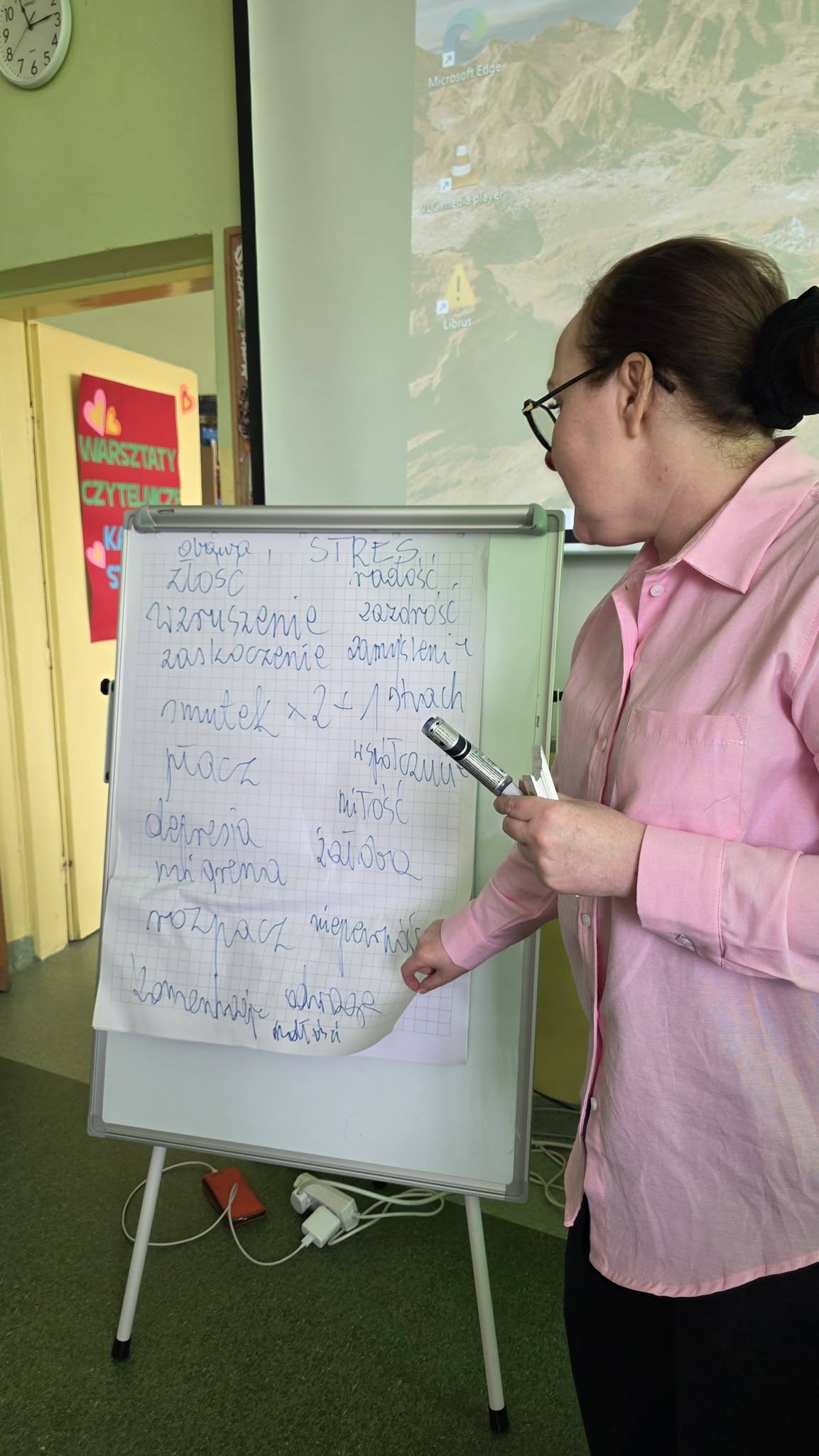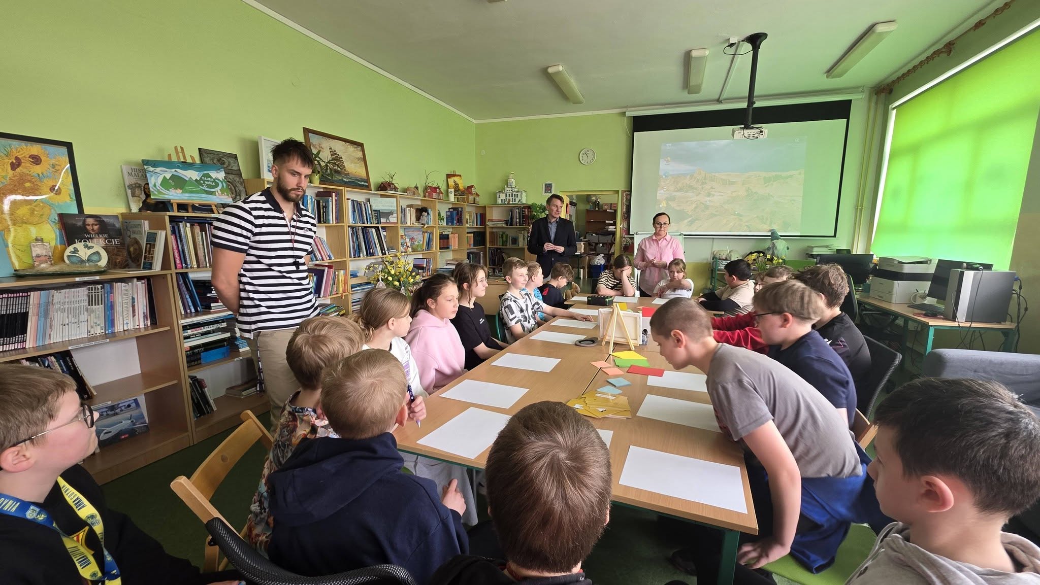Nasz Gość zaprezentował uczniom lalkę Janusza Korczaka, a w trakcie warsztatów przypinki, karty sytuacyjne jako narzędzia wspierające proces uczenia (się).