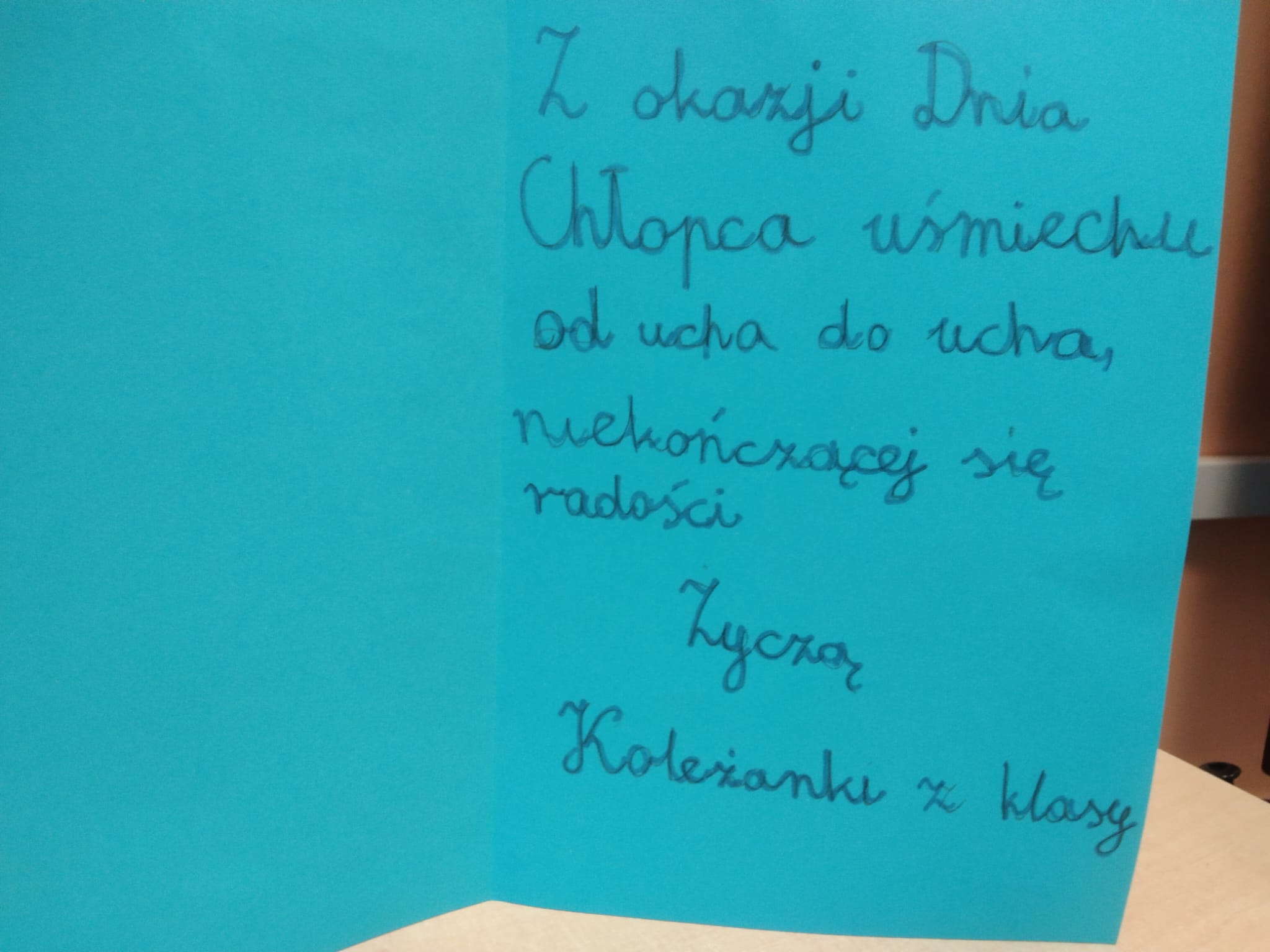 30 września w klasie II A chłopcy obchodzili swoje święto. W tym dniu dziewczynki zaśpiewały kolegom „Sto lat" i wręczyły im własnoręcznie wykonane laurki z życzeniami. Dodatkową atrakcją dla chłopców i pamiątką tego miłego dnia w szkole były upominki przygotowane przez Rodziców. Wspólne świętowanie w klasie sprzyja integracji i budowaniu pozytywnych relacji.