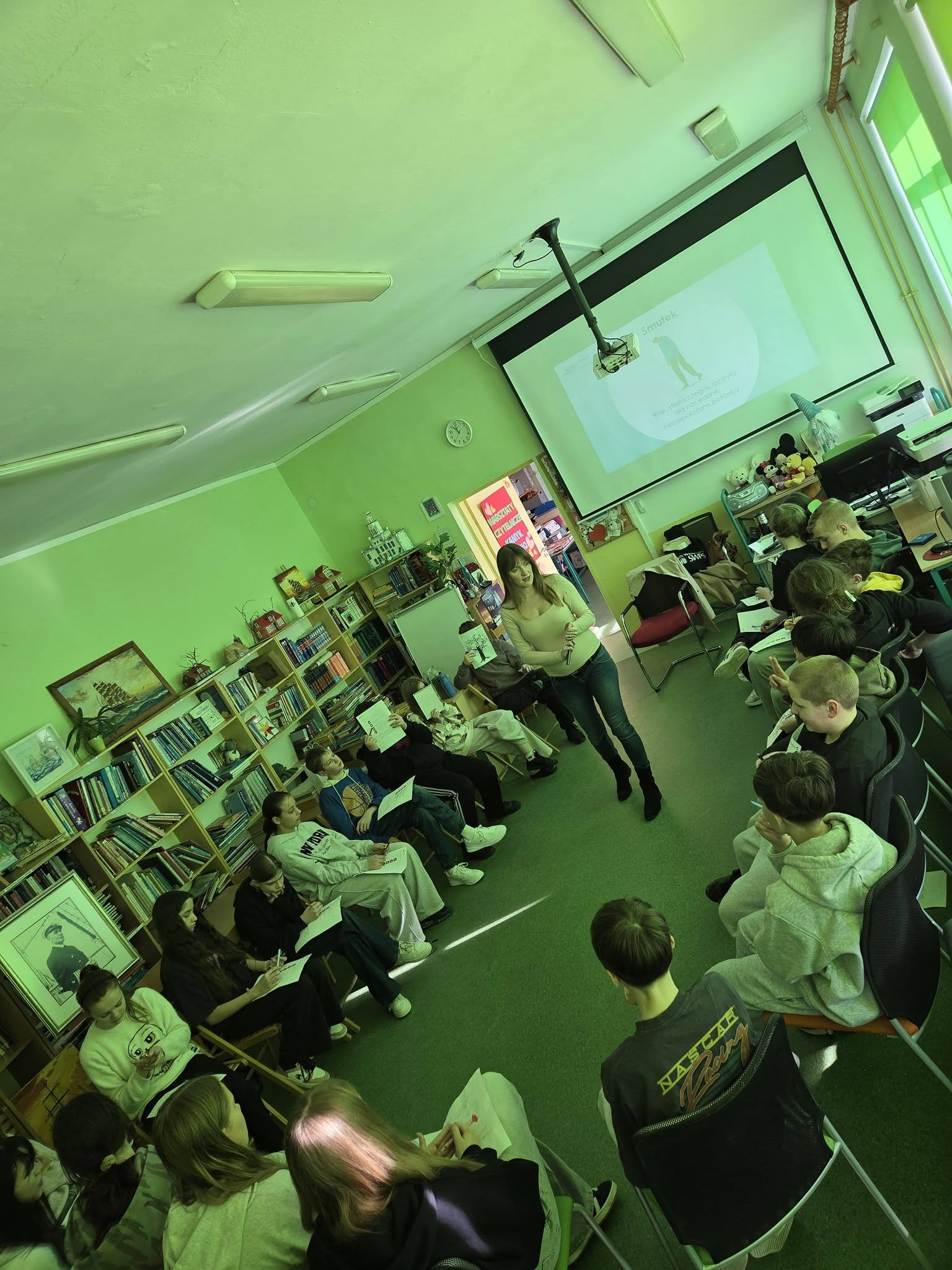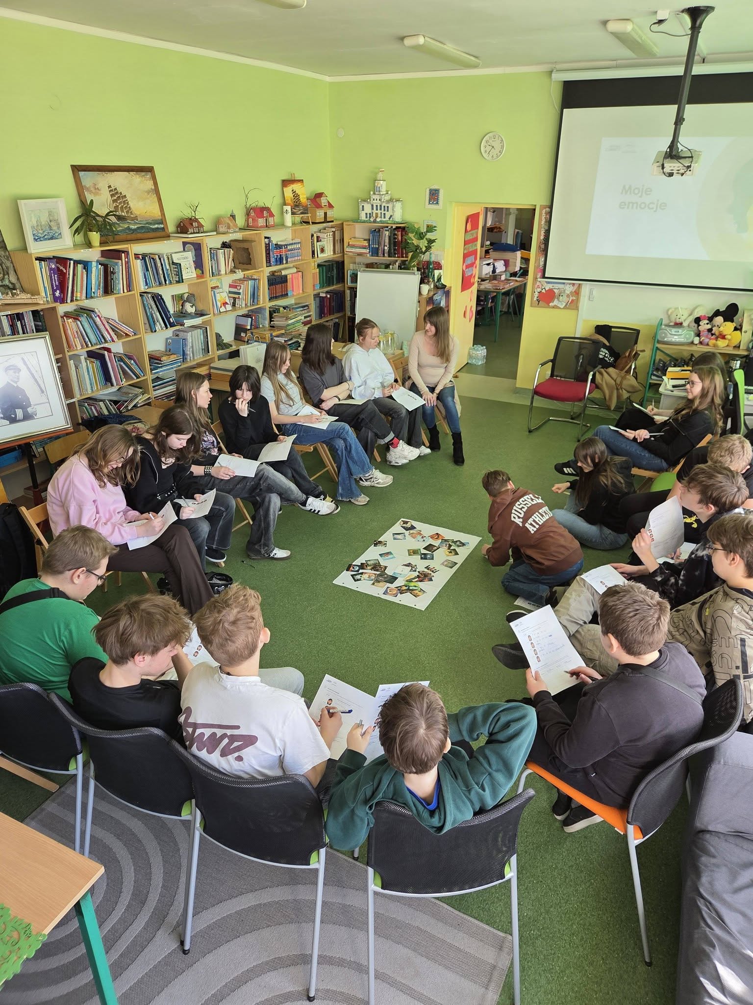 W czytelni odbyły się warsztaty pt. „Łączą nas relacje”, w których uczestniczyli uczniowie klas 6A i 6B.