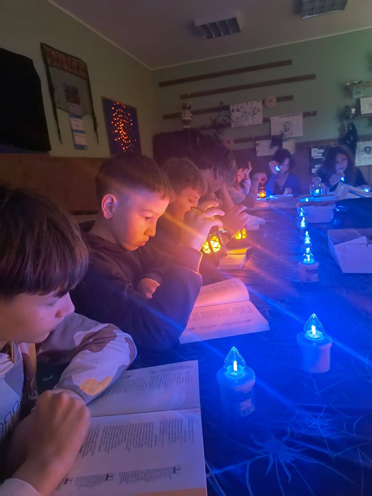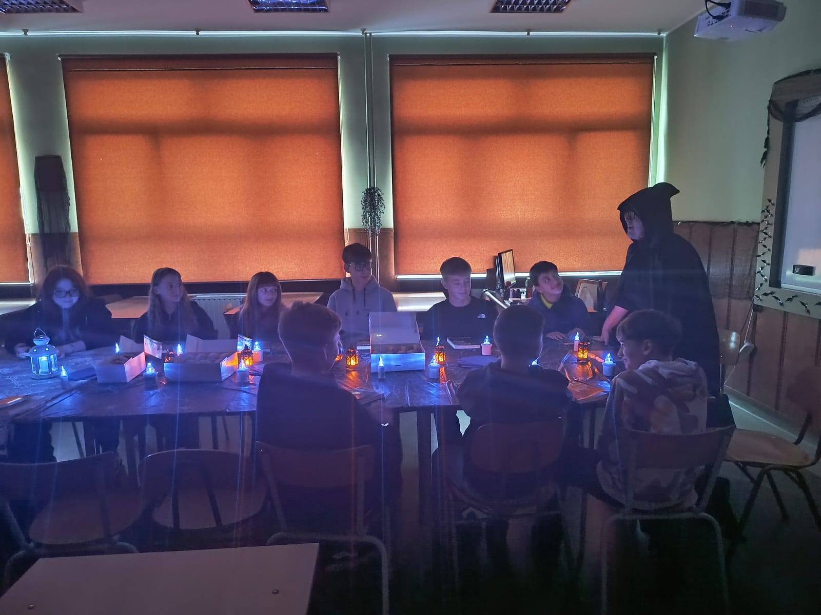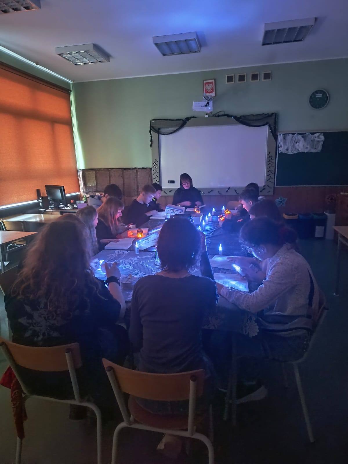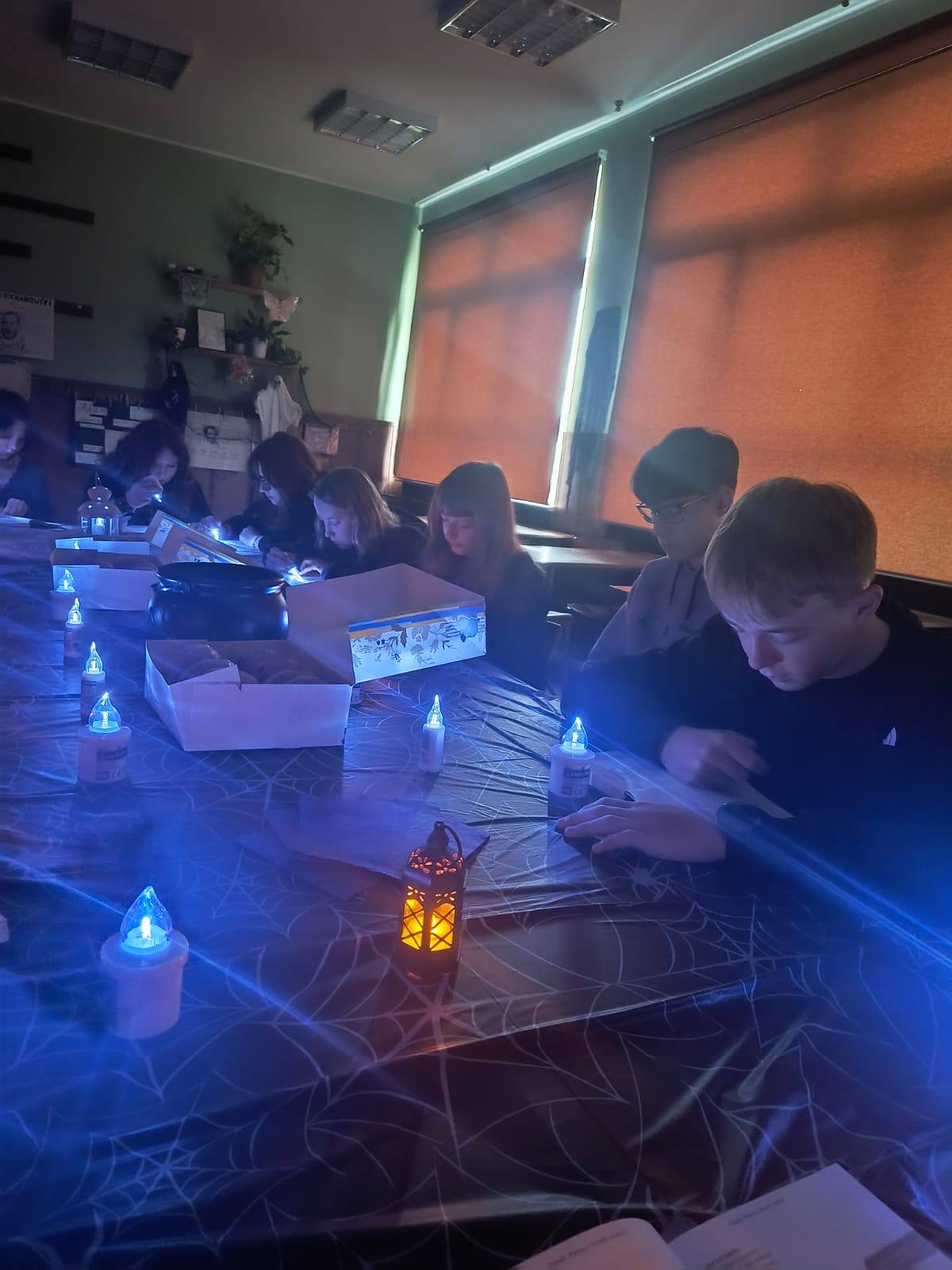 Dzięki Państwa pomysłowości i zaangażowaniu sala zamieniła się w prawdziwą scenerię mickiewiczowskiego obrzędu – z nastrojowym światłem świec, rekwizytami i dekoracjami, które pozwoliły w pełni poczuć klimat utworu. Nie zabrakło też słodkiego poczęstunku, który umilił wspólny czas i sprawił, że to literackie spotkanie stało się także świętem wspólnoty i współpracy.