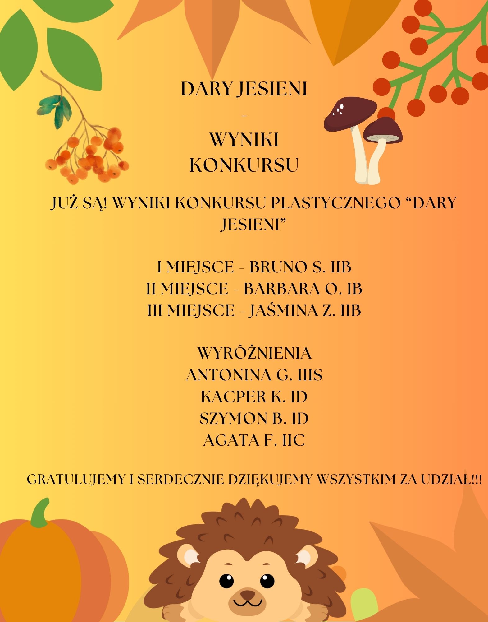 Już są! Wyniki szkolnego konkursu plastycznego "Dary jesieni".