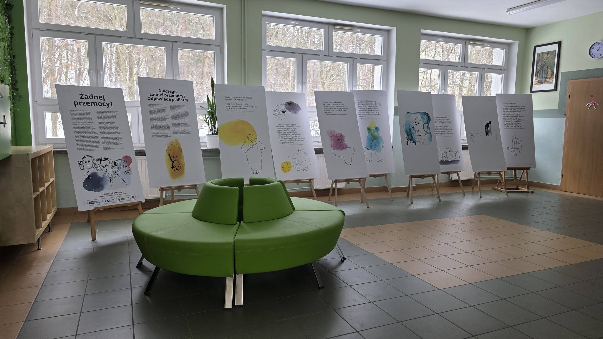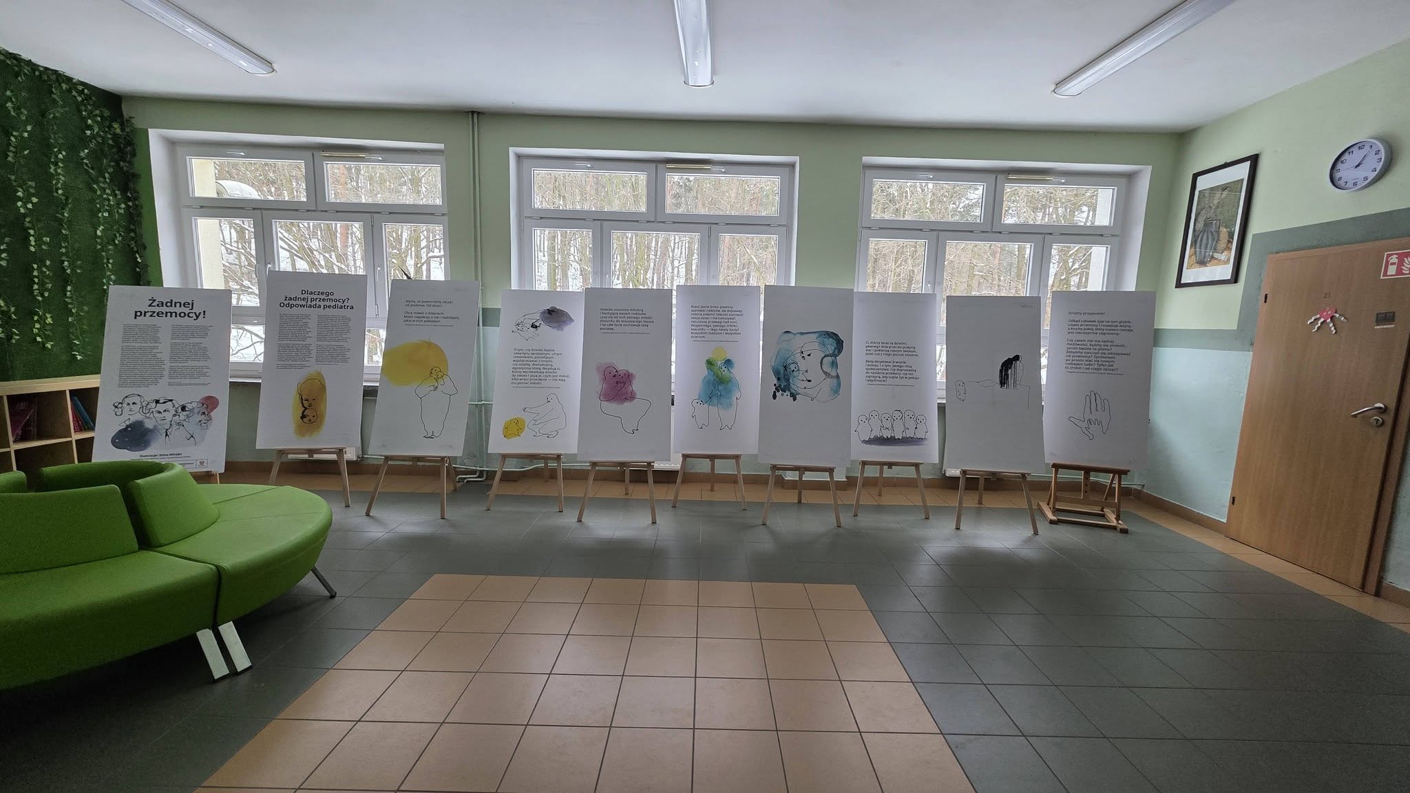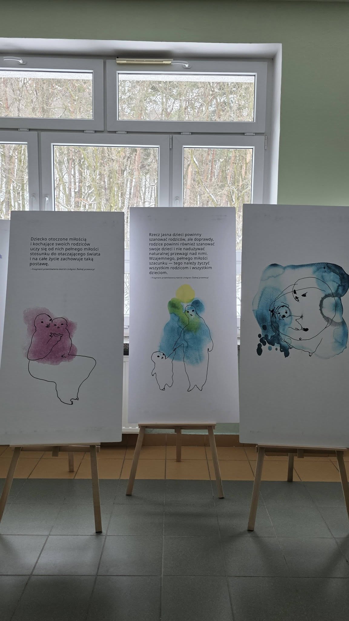 Na zaproszenie Pana dyrektora Bartosza Czyś i Biblioteka z wiatrem w żaglach Szkoły Podstawowej nr 39 w Gdyni w miesiącu lutym 2026 r., w naszej szkole gości wystawa wydawnictwa „Zakamarki” pt. „ŻADNEJ PRZEMOCY! Pokój na świecie według Astrid Lindgren”.