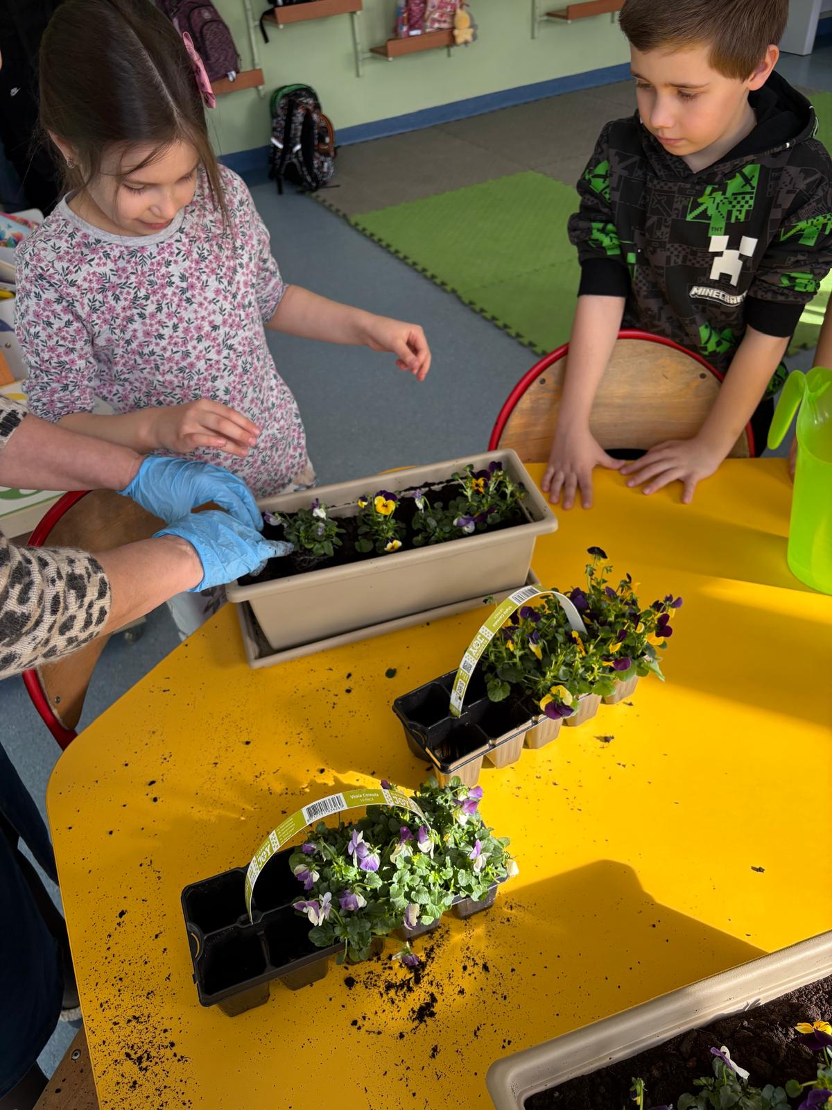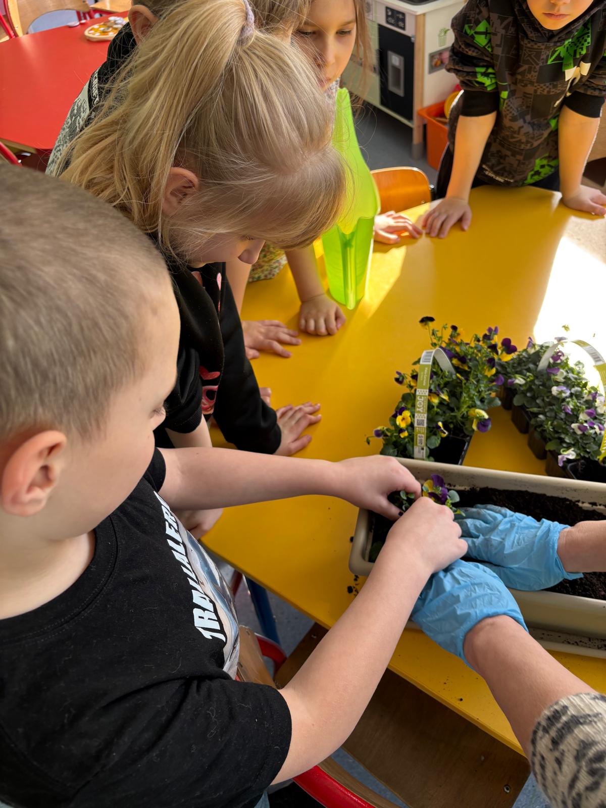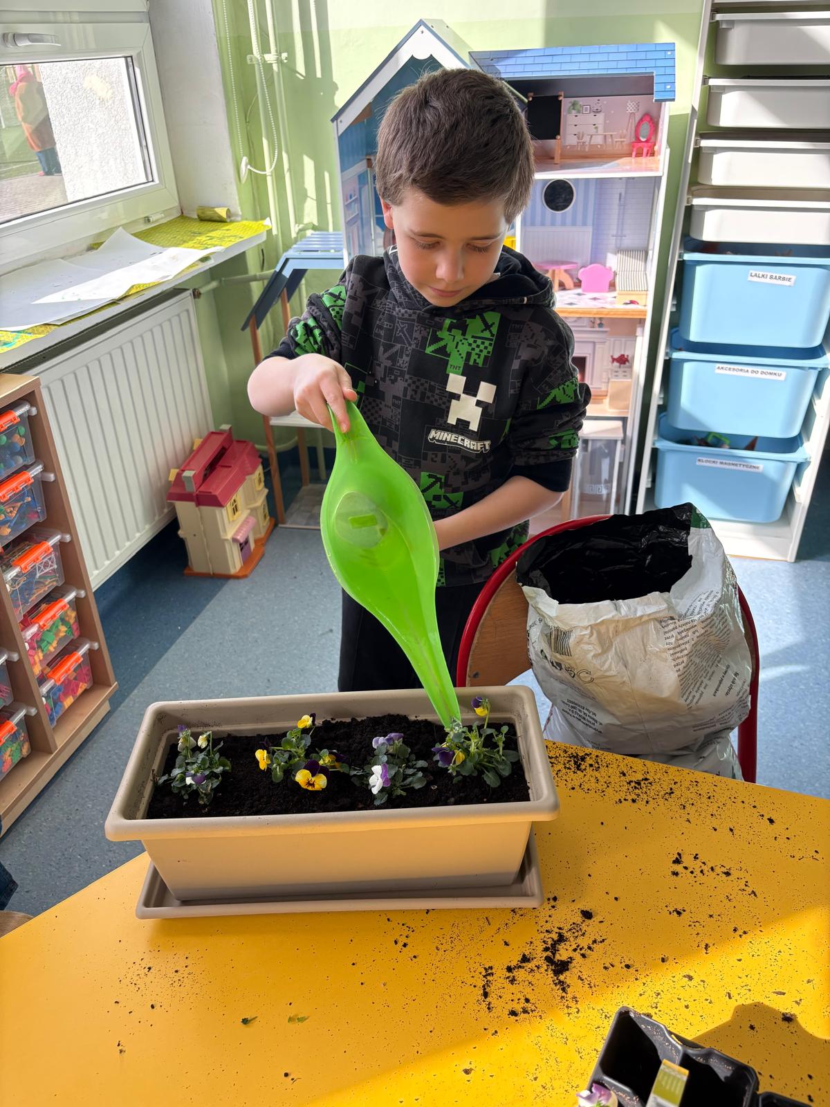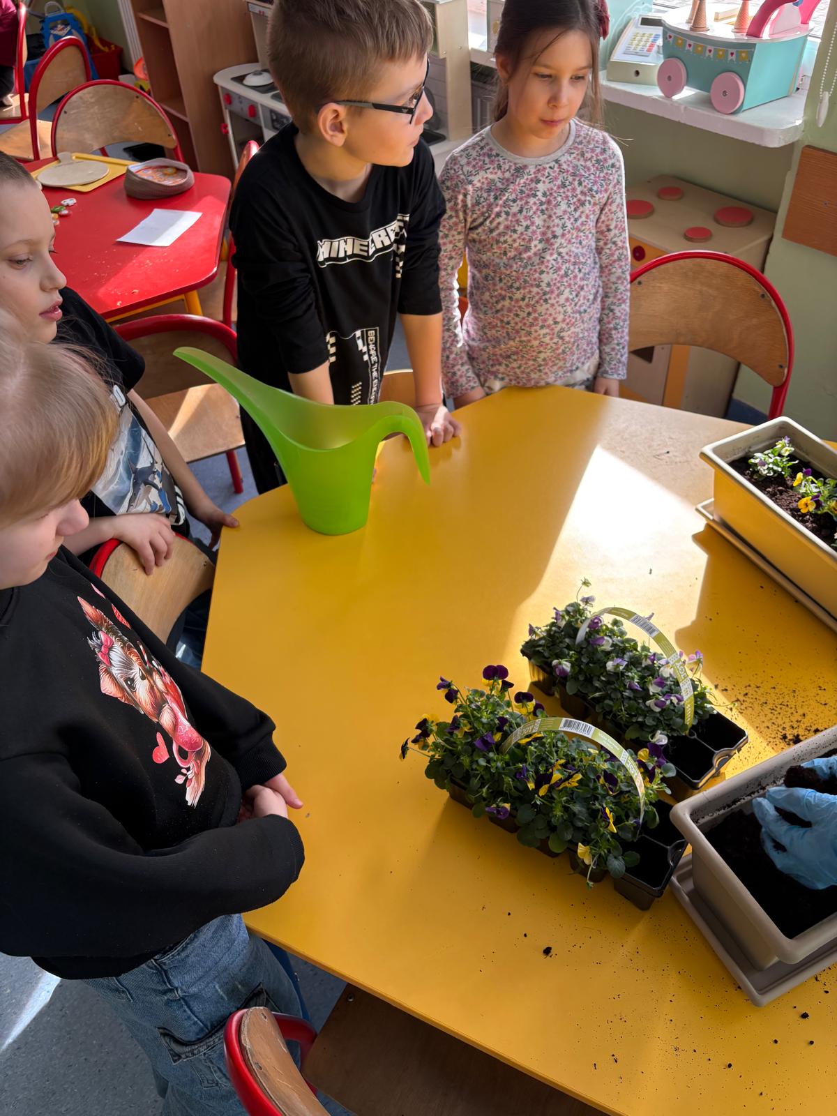 Co prawda do kalendarzowej wiosny jeszcze kilkanaście dni, ale świetliczakom znudziła się już zima. Trzeba zaprosić Panią Wiosnę do nas, bo może zapomniała? Zbłądziła? Zaspała? Dziś więc na naszych parapetach zagościły kolorowe bratki. Prace były tak intensywne, że zainteresowały Bratka, który niespodziewanie opuścił strony książki, przerwał swoją bajkę i pomógł dzieciom sadzić kwiatki. Hej, Wiosno, widziała Pani?!